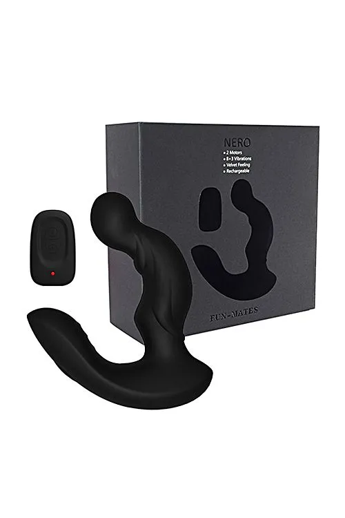 Nero – наиболее усовершенствованная модель стимулятора простаты, соединившая особую форму головки, совершающую вибромассаж разной степени мощности в зависимости от выбранного режима, анатомически комфортную и дополнительную стимулирующую зону ануса рельефную форму ствола и дополнительный отросток для массажа промежности. Широкий спектр режимов предоставляет выбор от легкого покалывания до усиленной стимуляции. Два мощных моторчика распространяют конкретную стимуляцию на предстательную железу и зону промежности. Закройте глаза, возьмите пульт в руку и полностью расслабьтесь, этот массаж захватывает дух!
