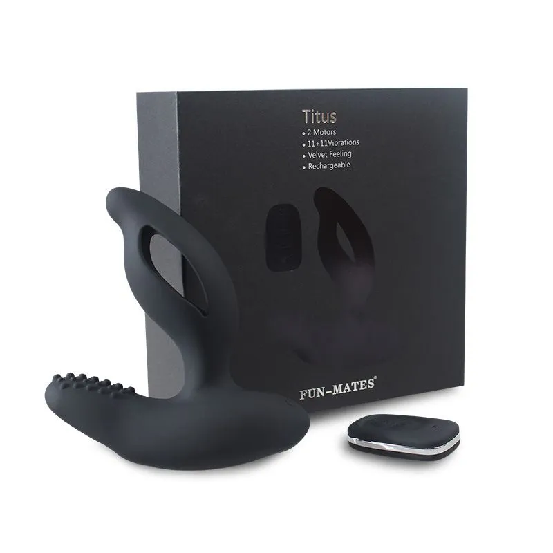 Стимулятор простаты Titus сможет доставить Вам удовольствие благодаря своему необычному дизайну и нескольким режимам вибрации. Кончик стимулятора расположен под небольшим углом, поэтому он будет направленно воздействовать на простату, в то время как раздвоенный ствол будет массажировать анус. Одновременно с этим широкое рельефное основание игрушки будет ласкать промежность. Стимулятор оснащен 2 моторами, каждый из которых способен производить 11 режимов вибрации. Такое разнообразие режимов даст Вам возможность поэкспериментировать со своими ощущениями и найти подходящий для себя темп.