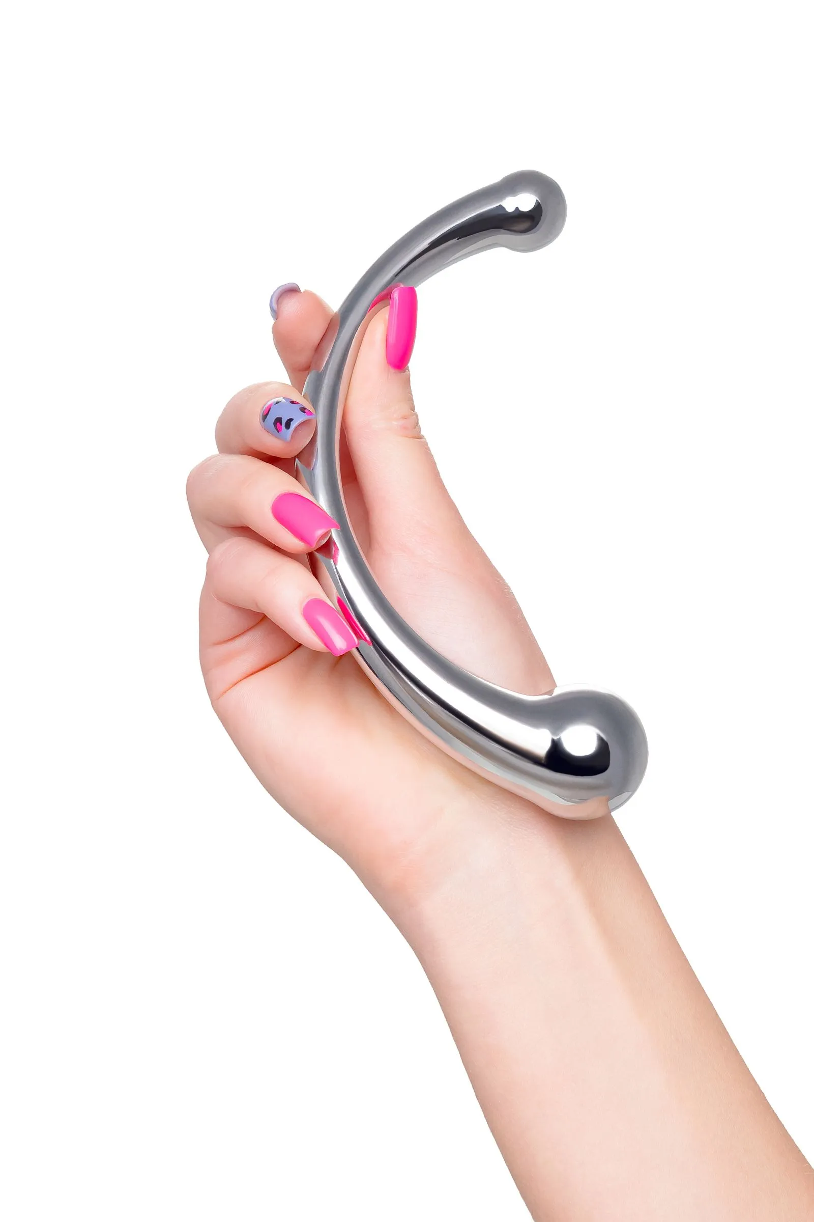 Металлический фаллоимитатор изогнутой формы с ярко выраженной головкой с обоих концов позволит испытать новые ощущения от чувственных экспериментов. Металл – один из самых безопасных и экологичных материалов, он прост в уходе, дружит со всеми видами смазок, а кроме того отлично поддается играм с температурами: для получения новых ощущений нагревайте или охлаждайте фаллоимитатор. Гладкость металла и плавность форм делают проникновение максимально комфортным. Приятная тяжесть добавит изюминку в сексуальную игру, что позволит получить еще больше наслаждения. С одной стороны диаметр головки 3,2 см – оптимальный размер для анальной или вагинальной стимуляции. Благодаря С-образной форме и внушительной головке отлично стимулирует зону G. Изогнутая форма удобно ложится в ладонь и вписывается как в сексуальную соло-игру, так и в парную
