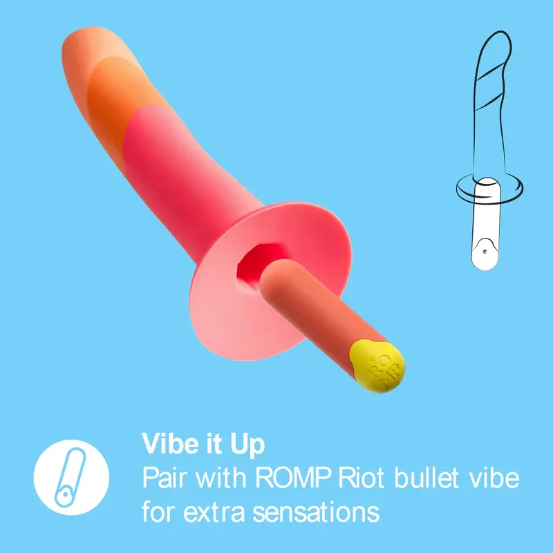 Независимо от уровня вашего опыта, Dizzi удобен в использовании и предлагает множество разнообразных способов игры. Основание с присоской позволяет использовать его в качестве страпона, поэтому вы можете играть с партнером. Он также подходит для игры в одиночку, присасываясь к поверхности. Вы даже можете испытать новый уровень стимуляции, соединив Dizzi с вибропулей ROMP Riot bullet vibe (продается отдельно). Он безопасен для тела и водонепроницаем, поэтому вы можете принимать душ или ванну максимально комфортно, где бы вы ни находились.