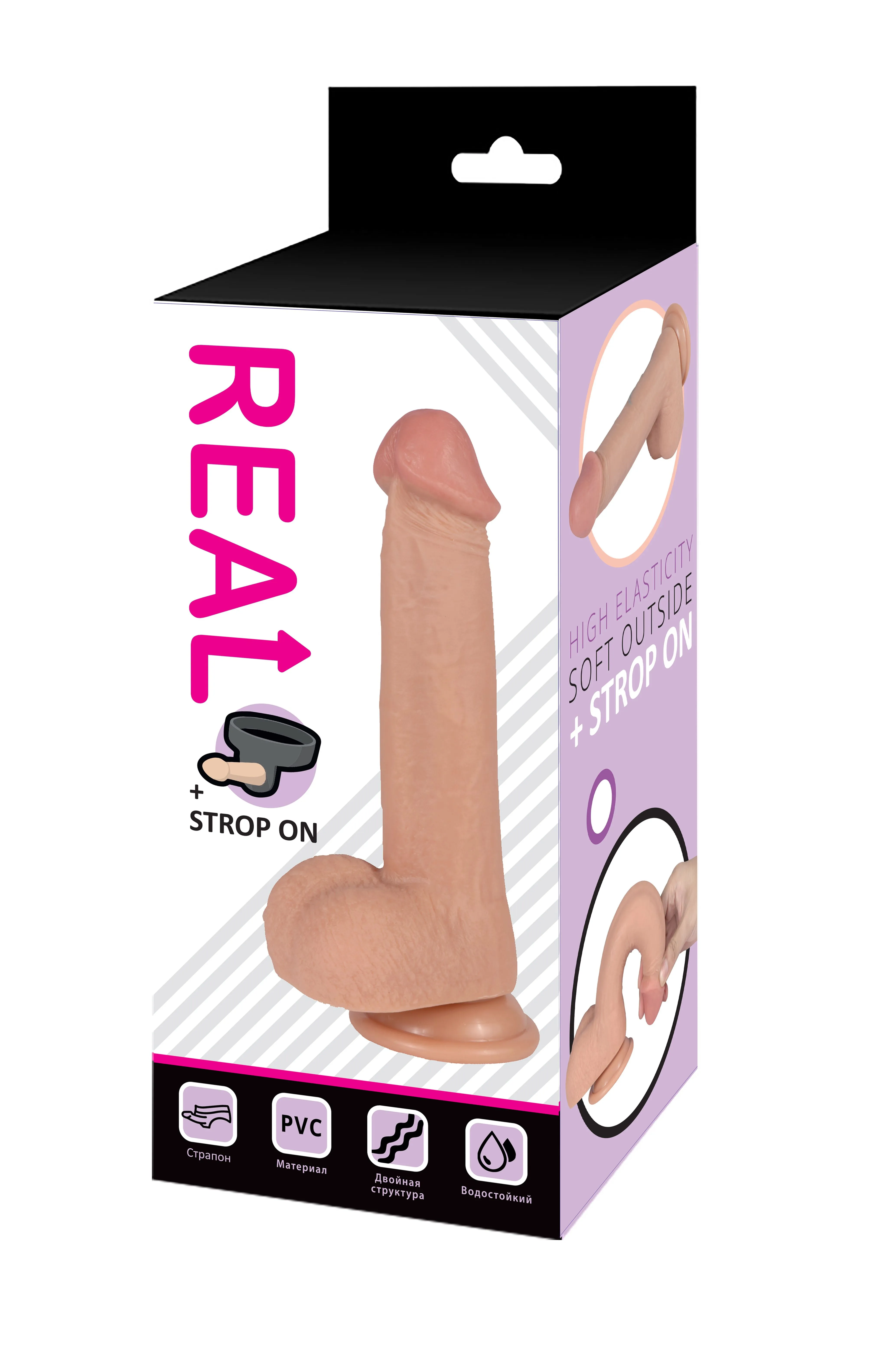 —Реалистичный фаллоимитатор REAL на присоске и трусиками для страпона