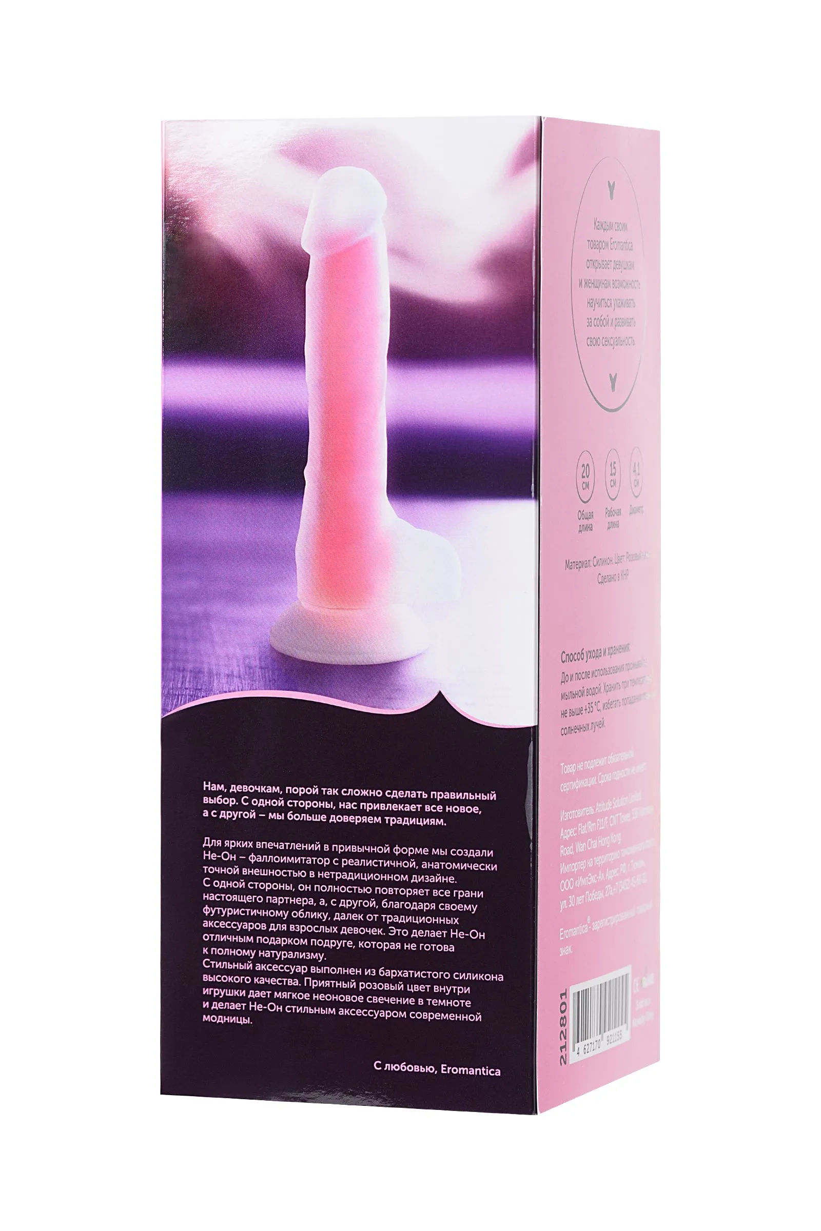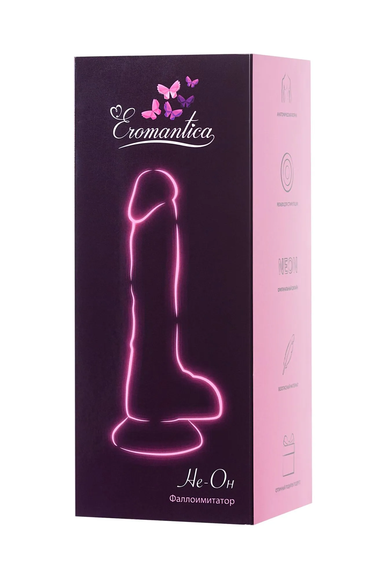 Не-Он искушает необычным решением соединить в одной игрушке анатомически точный внешний вид с нетрадиционным дизайном. Выраженная рельефная головка, обозначенные вены, жилки и мошонка повторяют естественные формы партнера, а розовое неоновое свечение внутри делает любовную игру сияющей и выразительной. Такой девайс точно спасёт Тебя от скучных ночей и серых будней, добавит красок в моменты интимной близости и даст волю фантазиям, освободив Твои руки для нежных прикосновений! Ведь в основании у него предусмотрена надёжная присоска для любой гладкой поверхности. Однажды познакомившись с Не-Он, Ты запомнишь его эффектную внешность и яркие вспышки удовольствия от любовных ласк!