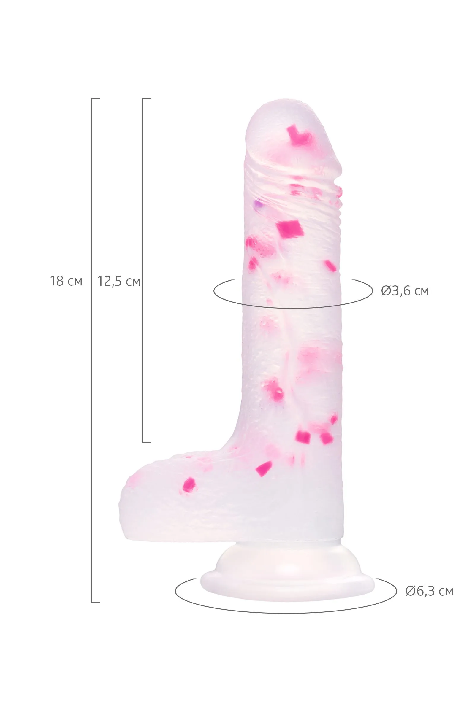 Идеальная форма, размер и цвет - фаллоимитатор Crowley для незабываемых ощущений. Выраженная головка и дополнительный рельеф в виде складок и вен простимулируют самые чувствительные интимные точки. Бархатный нежный силикон максимально быстро адаптируется под температуру тела, обеспечивая непревзойдённый комфорт и удовольствие от использования. Необычный дизайн в виде прозрачного силикона с цветными вкраплениями идеально подходит для тех, кто не готов к супер-реалистичным игрушкам и хочет разнообразить сексуальную жизнь. Присоска позволит использовать игрушку на любых гладких поверхностях, освобождая руки для дополнительных ласк. Мошонка служит ограничителем, позволяя безопасно использовать фаллоимитатор на комфортную глубину. Рекомендуется использовать с лубрикантами на водной основе. Диаметр 3,6 см Рабочая длина 12,5 см Длина 18 см Диаметр присоски 6,3 см Материал: силикон Страна бренда: Китай