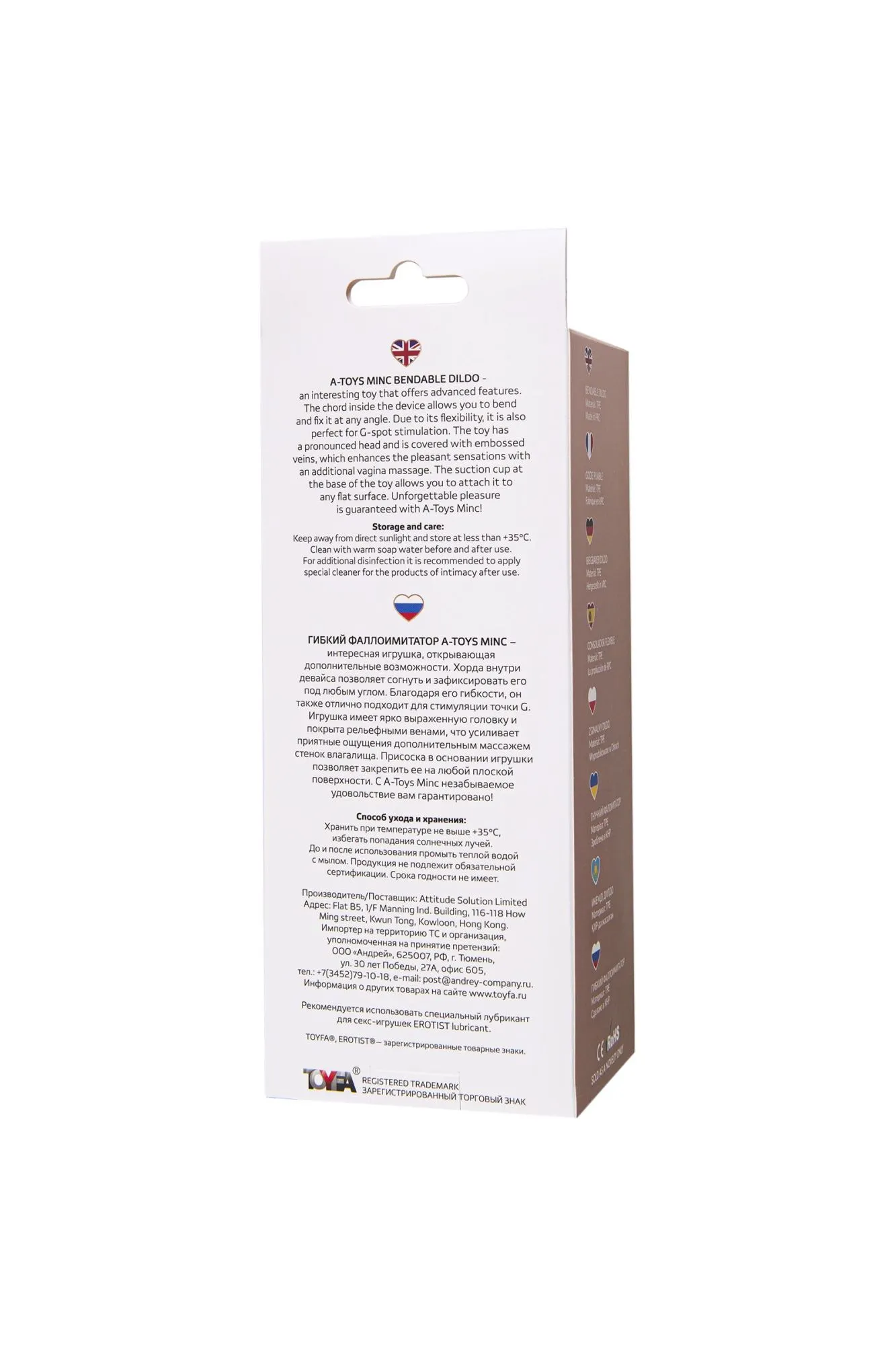 Гибкий фаллоимитатор A-Toys Minc – интересная игрушка, открывающая дополнительные возможности. Хорда внутри девайса позволяет согнуть и зафиксировать его под любым углом. Благодаря его гибкости, он также отлично подходит для стимуляции точки G. Игрушка имеет ярко выраженную головку и покрыта рельефными венами, что усиливает приятные ощущения дополнительным массажем стенок влагалища. Присоска в основании игрушки позволяет закрепить ее на любой плоской поверхности. С A-Toys Minc незабываемое удовольствие вам гарантировано!