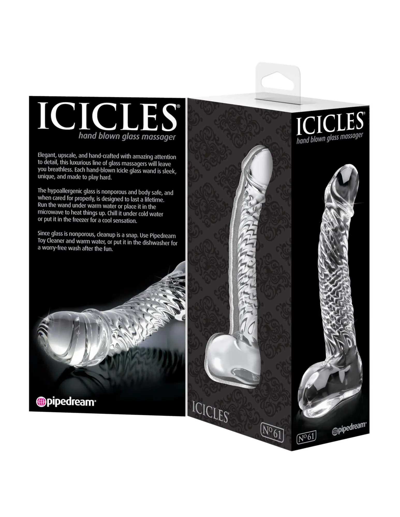 Icicles № 61 - это рельефный фаллоимитатор из стекла классической формы, изогнутый для лучшей стимуляции точки G или простаты. Этот фаллоимитатор отлично подойдет даже для новичков благодаря его гладкой головке, которая обеспечит плавность введения игрушки. А рельефный ствол игрушки усилит Ваши ощущения от массажа, сделав удовольствие еще более сладким. Мошонка может служить удобной ручкой, а заодно и предохранителем в случае анальной стимуляции.