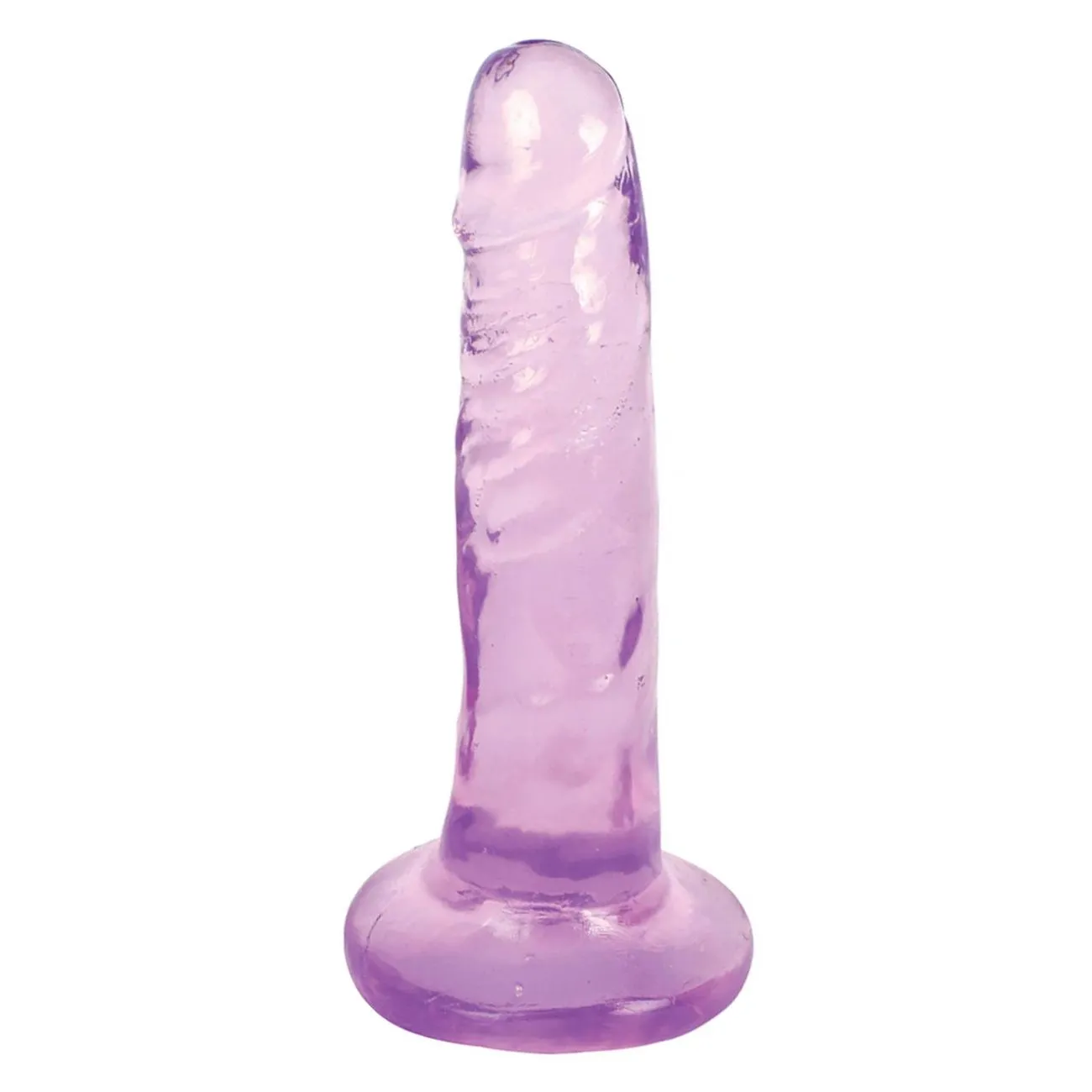 Игрушка сделана из прозрачного поливинилхлорида и похожа на застывшую льдинку. Она переливается на свету, радуя глаз яркими бликами. Модель обладает реалистичным, умеренно текстурированным стволом, копирующим естественный рельеф возбужденного пениса. На поверхности заметны неровности, складки и выступы. Верхняя часть увенчана реалистичной головкой, под которой заметны волнообразные складочки «крайней плоти». Мошонка отсутствует, зато внизу есть великолепная присоска для крепления на гладких поверхностях.