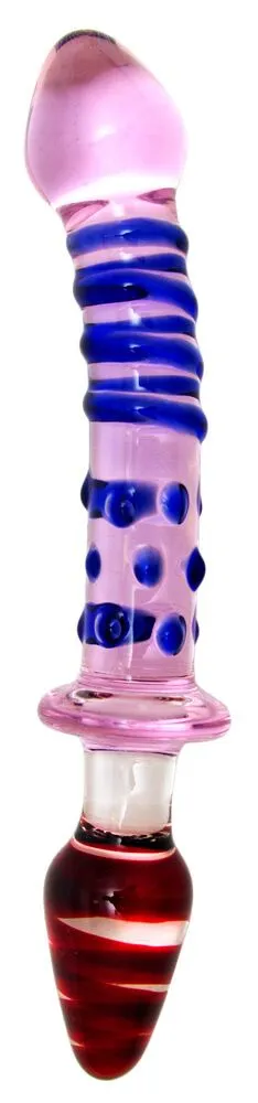 Стеклянный фаллоимитатор сможет удовлетворить все Ваши желания, ведь он имеет два конца, которые подходят для вагинальной и анальной стимуляции. Один из концов напоминает анальную пробку - у него вытянутая каплевидная головка и гладкий ствол. Второй конец имеет более широкую головку и богатый выпуклый рельеф в виде точек и завитков для более насыщенного массажа. Фаллоимитатор выполнен из стекла, он не имеет запаха и не вызывает аллергии. Его можно нагреть или охладить в воде для получения более ярких ощущений от контраста температур.