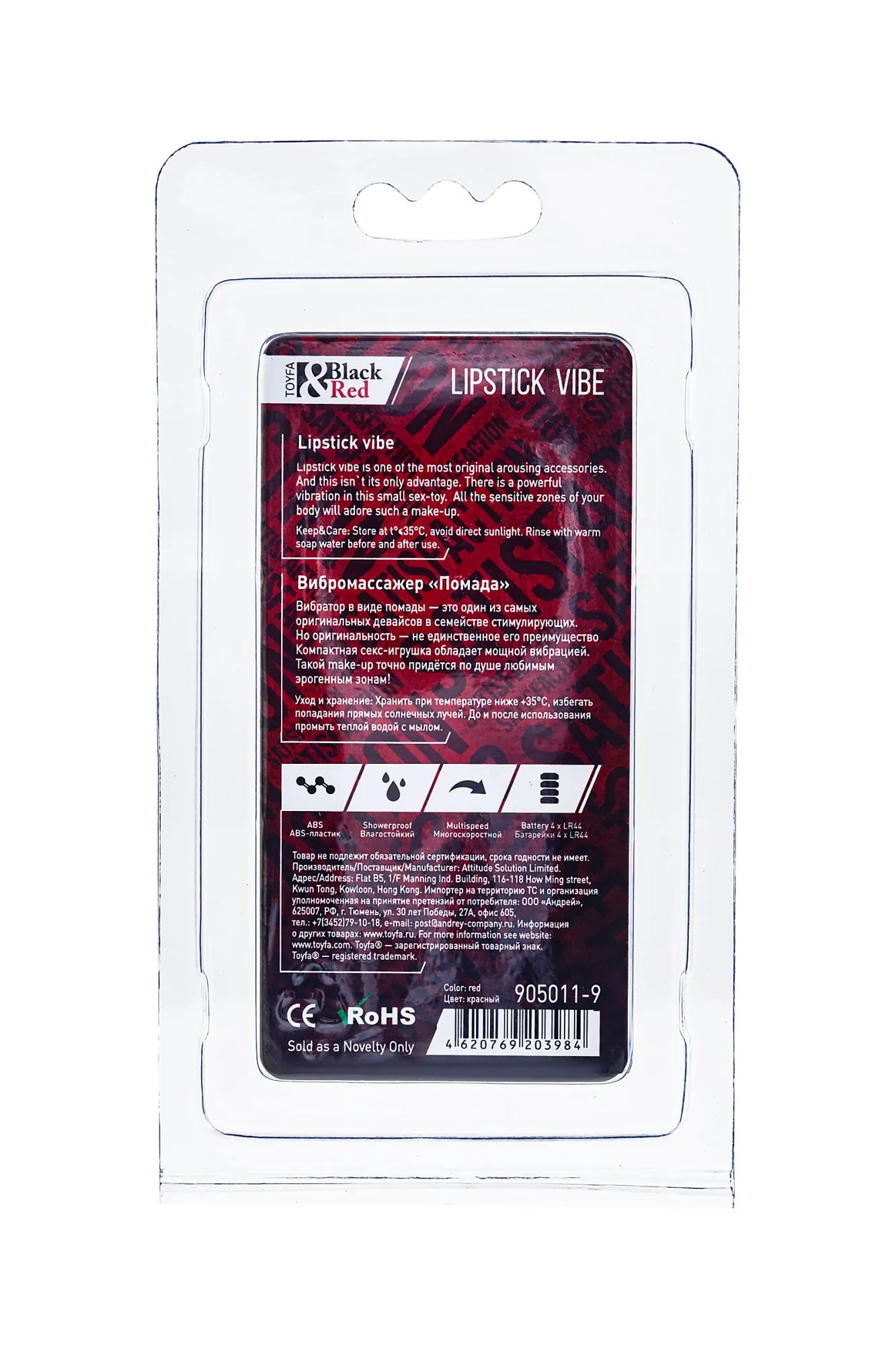 —Вибромассажер Black&Red by TOYFA «Помада», силикон, красный, 9 см