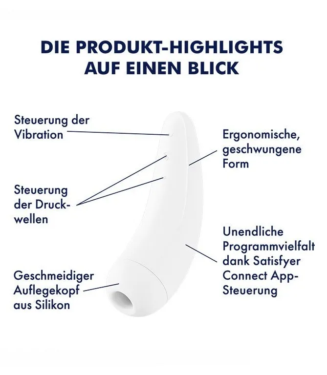 Благодаря эргономично изогнутой форме Satisfyer Curvy 2+ идеально лежит в руке. Изготовленный из медицинского силикона стимулятор обладает гладкой, приятной на ощупь поверхностью.