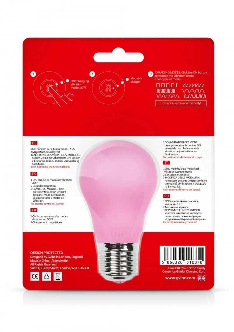 Вибратор Gbulb, выполненный в необычном дизайне в виде лампочки, подойдет для стимуляции различных внешних эрогенных зон. С его помощью Вы сможете простимулировать наиболее чувствительные места на своем теле - клитор, половые губы или соски. Массажер оснащен мощным мотором, который обеспечит глубокое проникновение волн вибрации. Всего игрушка обладает 6 режимами работы, поэтому Вы сможете насладиться как легкими толчками, так и интенсивными вибрациями.