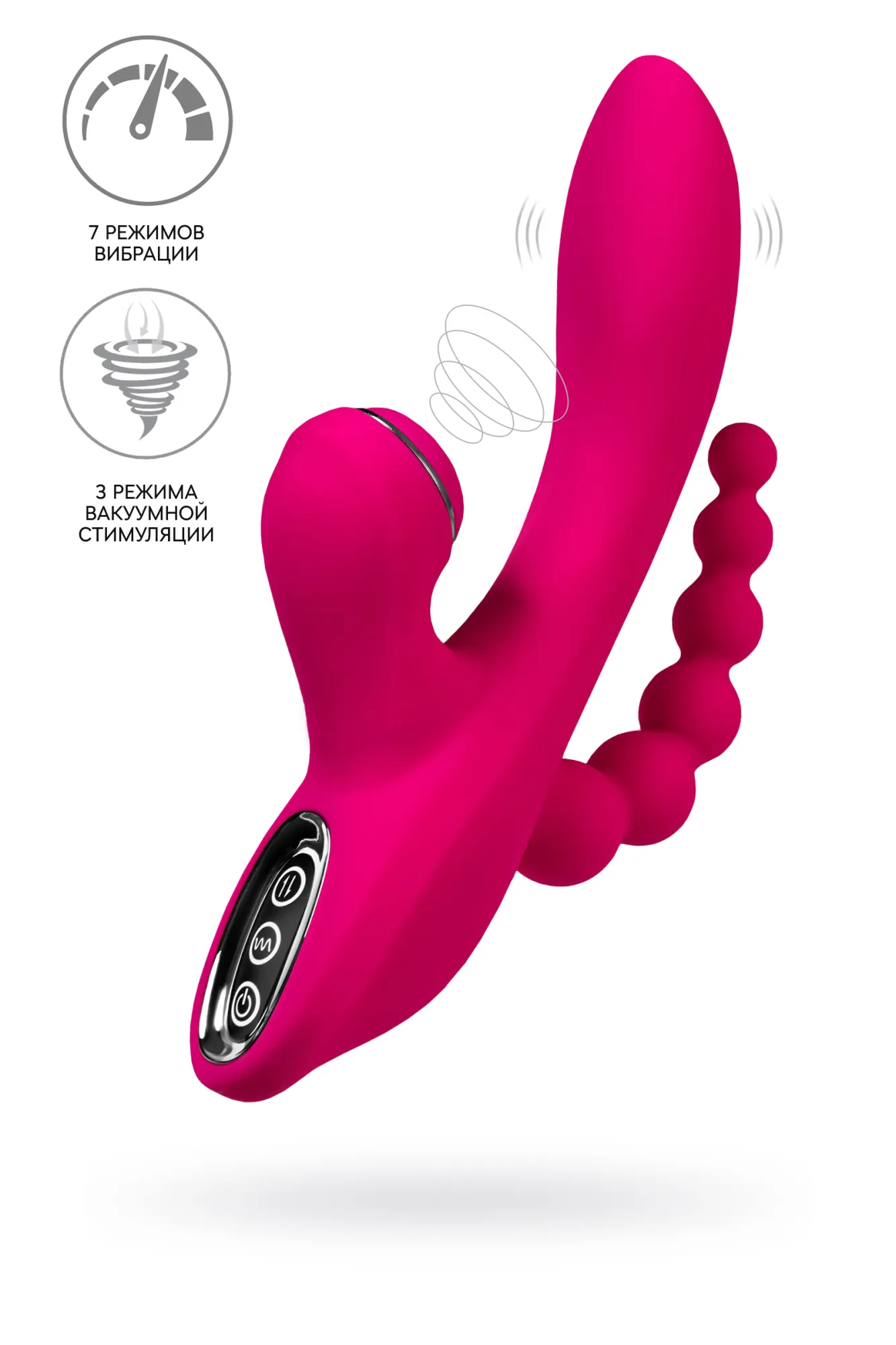 Позвольте TRIPLING стать вашим незаменимым спутником в мире удовольствия и экстаза! Этот вибростимулятор 3 в 1 охватит каждую эрогенную зону вашего тела, доставляя вам множество приятных сенсаций и незабываемых оргазмов. С двумя мощными моторами внутри, TRIPLING предлагает разнообразие ощущений, которые вы еще не испытывали. Его загнутая головка специально разработана для стимуляции точки G, чтобы каждый оргазм был в разы ярче и интенсивнее. Плавно расширяющийся анальный отросток-елочка идеально подходит для постепенного введения, принося непревзойденное удовольствие, даже при первом опыте. Мотор, находящийся в основании, передает мощные вибрации в анальный отросток, добавляя новые измерения наслаждения. И как вишенка на торте, вакуумный стимулятор клитора заботится о вашем экстатическом оргазме, оставляя вас с трепетными воспоминаниями. Изготовленный из высококачественного бархатистого силикона, TRIPLING обеспечивает максимальный комфорт и приятные тактильные ощущения. Его элегантный дизайн и гладкая текстура делают его не только мощным инструментом удовольствия, но и прекрасным аксессуаром для вашей коллекции интимных игрушек. Зарядите его с помощью USB-кабеля и наслаждайтесь его возбуждающими функциями в любое время и в любом месте. Три режима вакуумной стимуляции клитора и семь режимов вибрации позволят вам настроить интенсивность стимуляции под свои предпочтения и желания. TRIPLING создан для тех, кто ищет новые уровни удовольствия и жаждет удивительных ощущений. Не забывайте о правильном хранении и уходе за TRIPLING, чтобы он всегда оставался вашим верным спутником. Перед каждым использованием полностью зарядите вибростимулятор. После использования промойте его мыльной водой и дезинфицируйте антибактериальным спреем, чтобы сохранить его гигиеничность и долговечность. Погрузитесь в мир бесконечного наслаждения с TRIPLING и дайте волю своим фантазиям и желаниям. 7 режимов вибрации 3 режима вакуумной стимуляции клитора анальный отросток-елочка заряжается от USB бархатистый силикон общая длина 21 см Время зарядки: 120 минут Время работы на полной зарядке: 90 минут