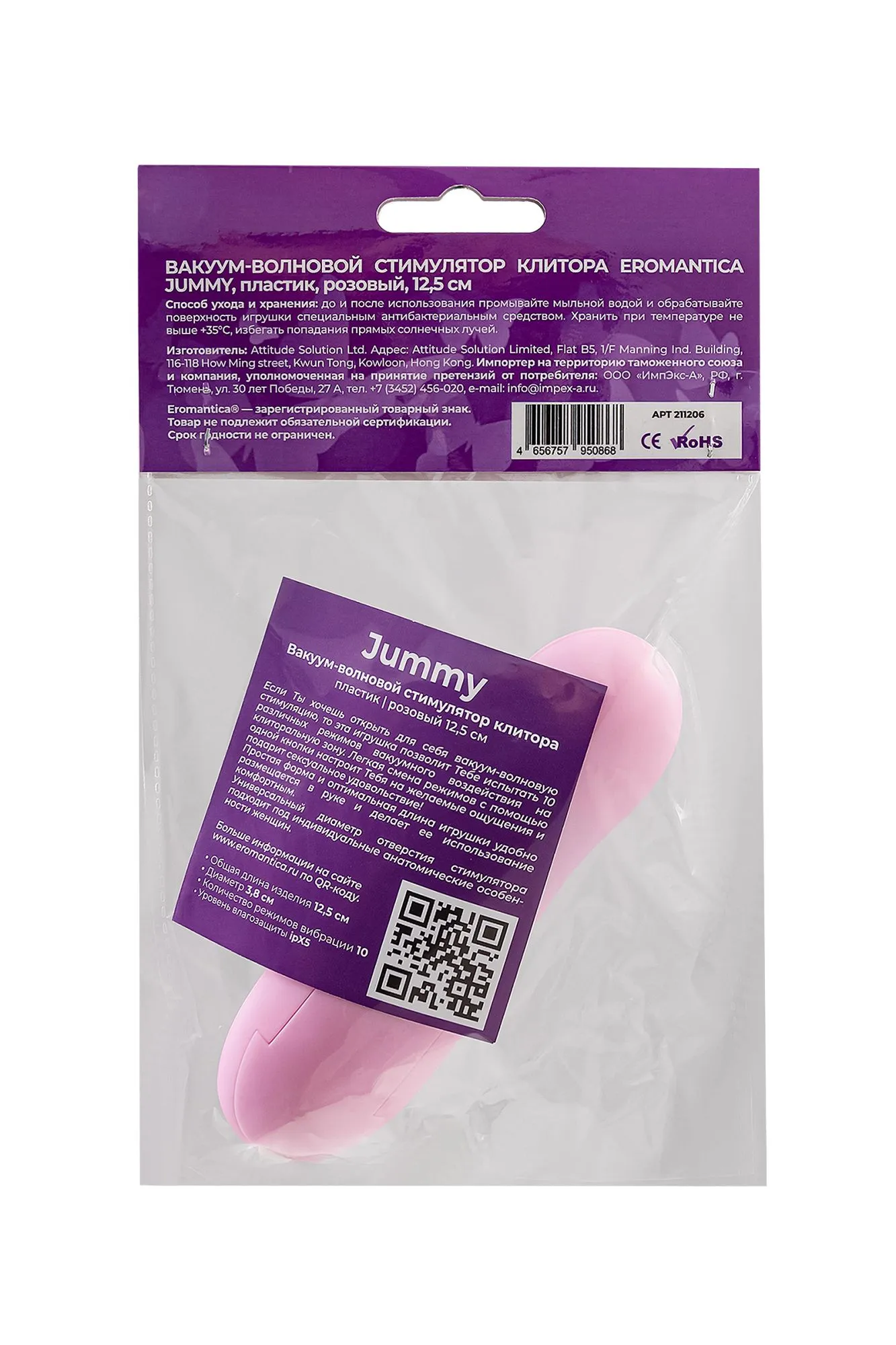 —Вакуум-волновой стимулятор клитора Eromantica Jummy, пластик, розовый, 12,5 см