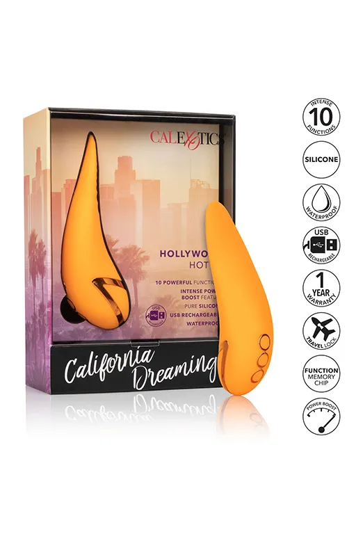 Вибромассажер Hollywood Hottie – перезаряжаемый компактный мульти скоростной универсальный вибратор из бесшовного материала с дополнительной обработкой. Эта модель имеет эргономичный дизайн и функцию «мерцающий язычок» и функцию Power Boost, обеспечивающую мгновенный переход к супермощной вибрации.