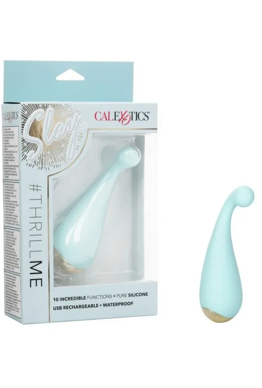 Slay #ThrillMe – перезаряжаемый мульти скоростной миниатюрный вибромассажер. Благодаря ярко-выраженной маленькой головке в виде бусинки идеально подходит для целенаправленной стимуляции самых чувствительных мест. Бесшумный двигатель вибратора обеспечивает 10 различных функций вибрации, пульсации и эскалации.