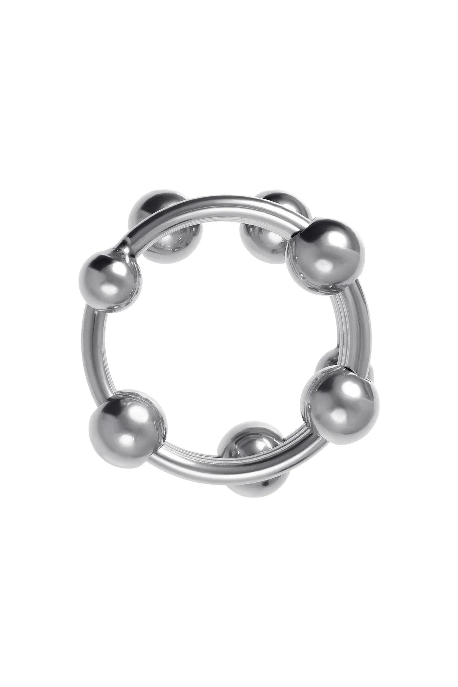 Металлическое кольцо для головки пениса многократно усилит удовольствие обоих партнеров. Кольцо выполнено в виде спирали с многочисленными подвижными бусинами, которые стимулируют самые чувствительные зоны обоих партнеров. При каждом движении шарики массируют уздечку, вход во влагалище и зону G, делая секс более захватывающим. Кольцо фиксируется под головкой полового члена, благодаря чему головка становится более твердой, выраженной и особо чувствительной, а эрекция – продолжительной. Металл – один из самых безопасных и экологичных материалов, его можно использовать со всеми видами смазок и он прост в уходе. Кольцо из металла – особо прочное и тугое, добавьте немного лубриканта для комфортного надевания и снятия. Как использовать: Выбирайте кольцо подходящего диаметра, чтобы испытать максимальное удовольствие. Наденьте кольцо на половой член в эрегированном состоянии, для этого добавьте немного лубриканта. Зафиксируйте кольцо под головкой пениса и убедитесь, что оно плотно прилегает. Не допускайте дискомфорта и не носите кольцо более 30 минут. Как подобрать размер: Кольцо не должно быть слишком тугим или болтаться, но при этом оно должно легко надеваться и сниматься. Чтобы правильно подобрать нужный диаметр кольца, снимите 2 мерки с полового члена. Оберните мягкую измерительную ленту вокруг пениса чуть ниже головки и запишите полученные значения: одно - в расслабленном состоянии, другое – в эрегированном. Сложите ваши мерки, разделите на 2, и затем разделите на 3,14. Полученное значение – оптимальный диаметр подходящего вам кольца. Для дополнительной безопасности измерьте самую широкую часть на головке пениса и разделите на 3,14. Зная диаметр шляпки пениса, вы сможете подобрать достаточно удобное кольцо, которое не будет соскальзывать.