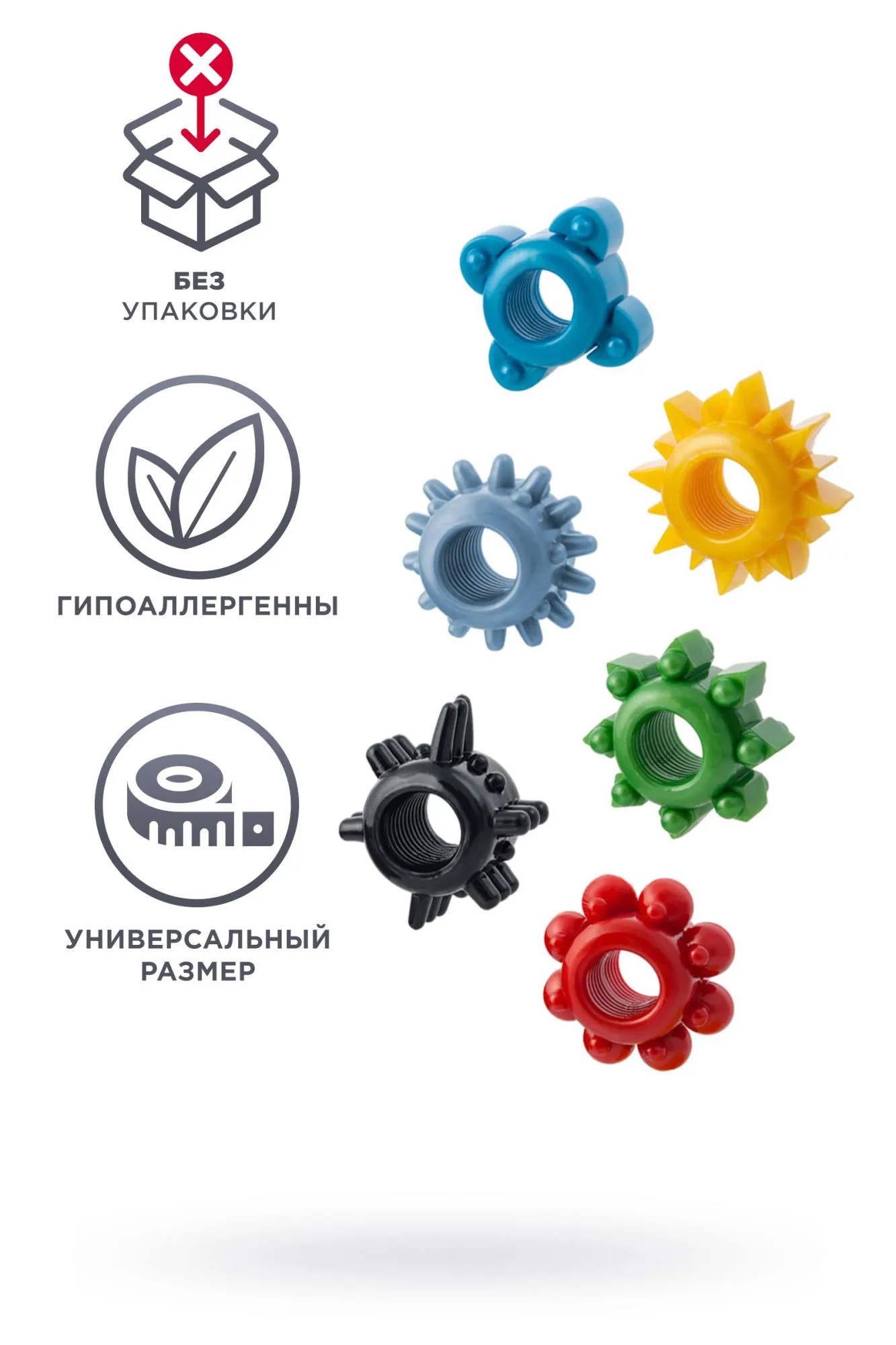 —Набор разноцветных колец на пенис, TPE, ассорти, 6 шт