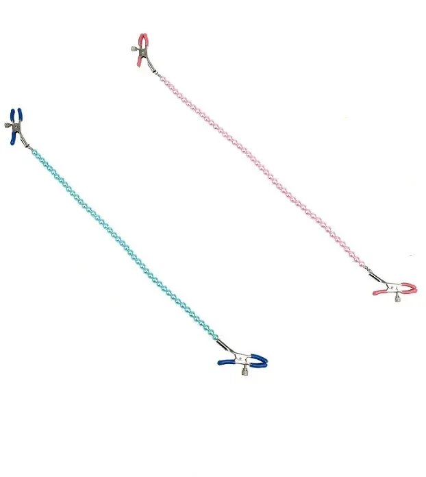 Зажимы на соски с цепочкой из бусин служат дополнительным стимулятором одной из самых чувствительных зон.Включают в себя 2 полностью регулируемых многофункциональных зажима. Имеют мягкие наконечники,между собой зажимы соединены цепью из бусин, которая одновременно служит своебразным утяжелителем для дополнительных ощущений.