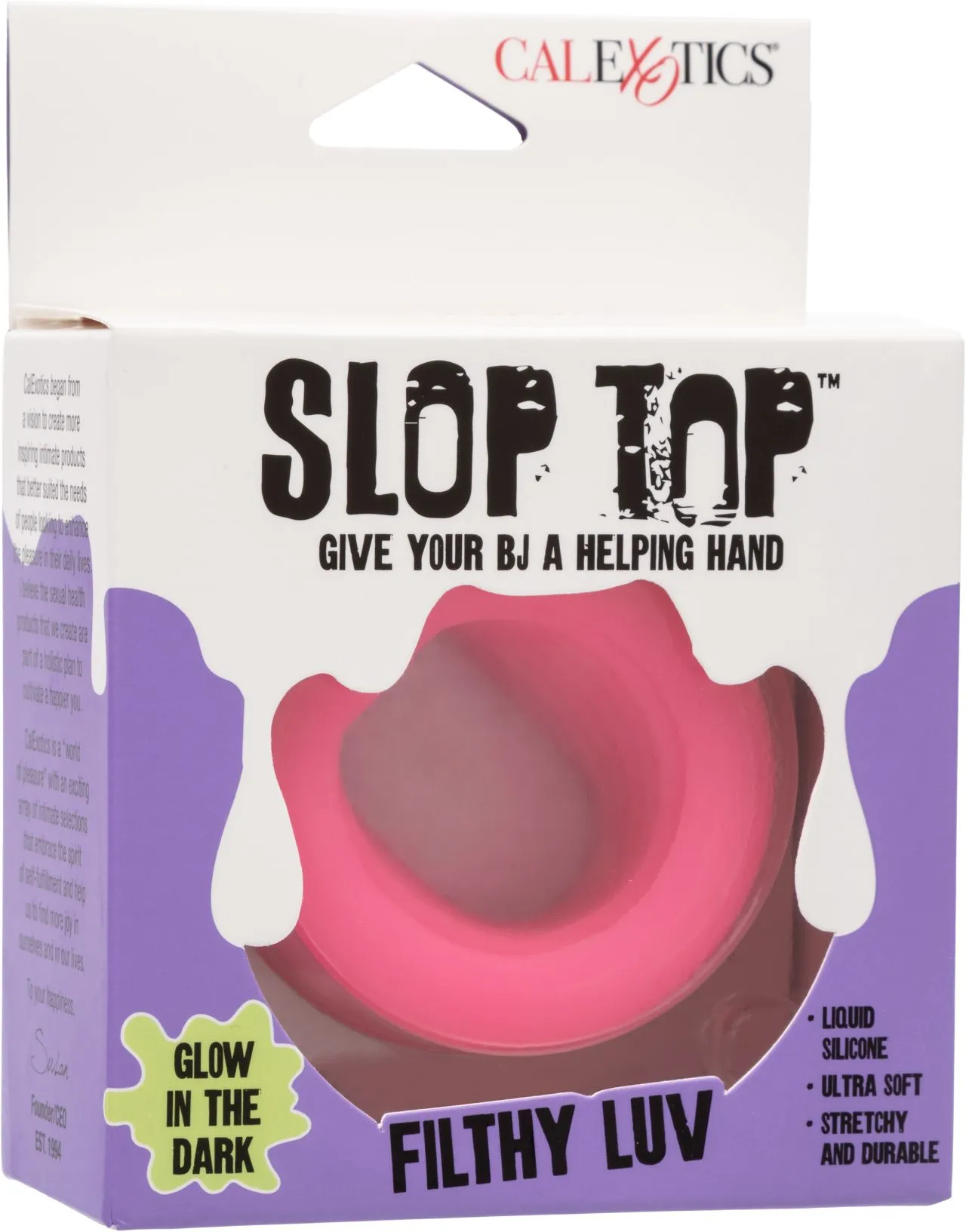 Эрекционное кольцо-бампер из жидкого силикона SLOP TOP FILTHY LUV изготовлено из высококачественного жидкого силикона, мягкое, гладкое и невероятно прочное. Его функция свечения в темноте добавляет захватывающий визуальный элемент, позволяя вам видеть действие даже при слабом освещении. Мягкий, плотный и эластичный материал обеспечивает плотное прилегание, которое адаптируется к вашим потребностям.