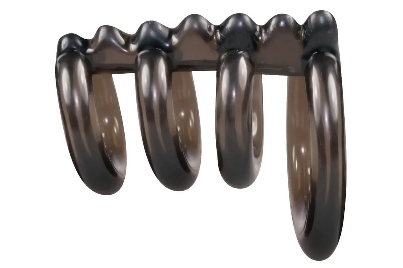 Насадка Bad Kitty от немецкой компании Orion представляет из себя сцепку из 4 колец, 3 из которых надеваются на пенис, а последнее - на мошонку. Такая необычная игрушка усилит эрекцию мужчины за счет пережатия сосудов у основания члена, тем самым продлевая время интимной близости. Также насадка будет дополнительно стимулировать эрогенные зоны партнерши, так как перемычка, соединяющая кольца, имеет рельефную поверхность. Она сделана из нежного и хорошо тянущегося термопластичного эластомера, поэтому использовать ее будет комфортно.