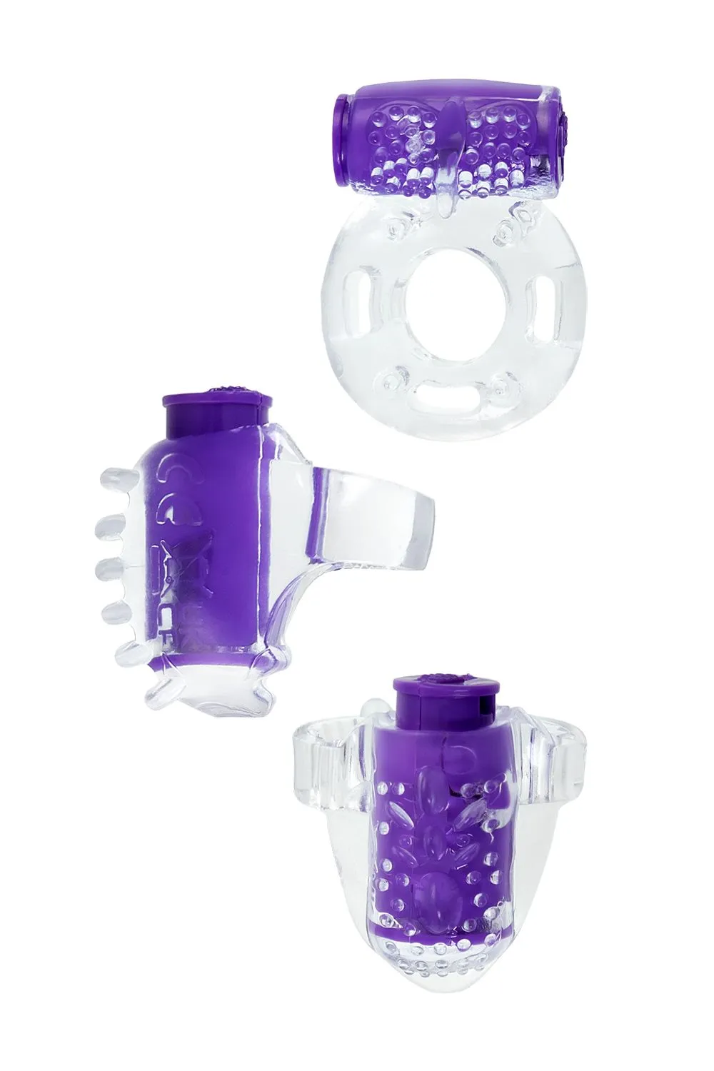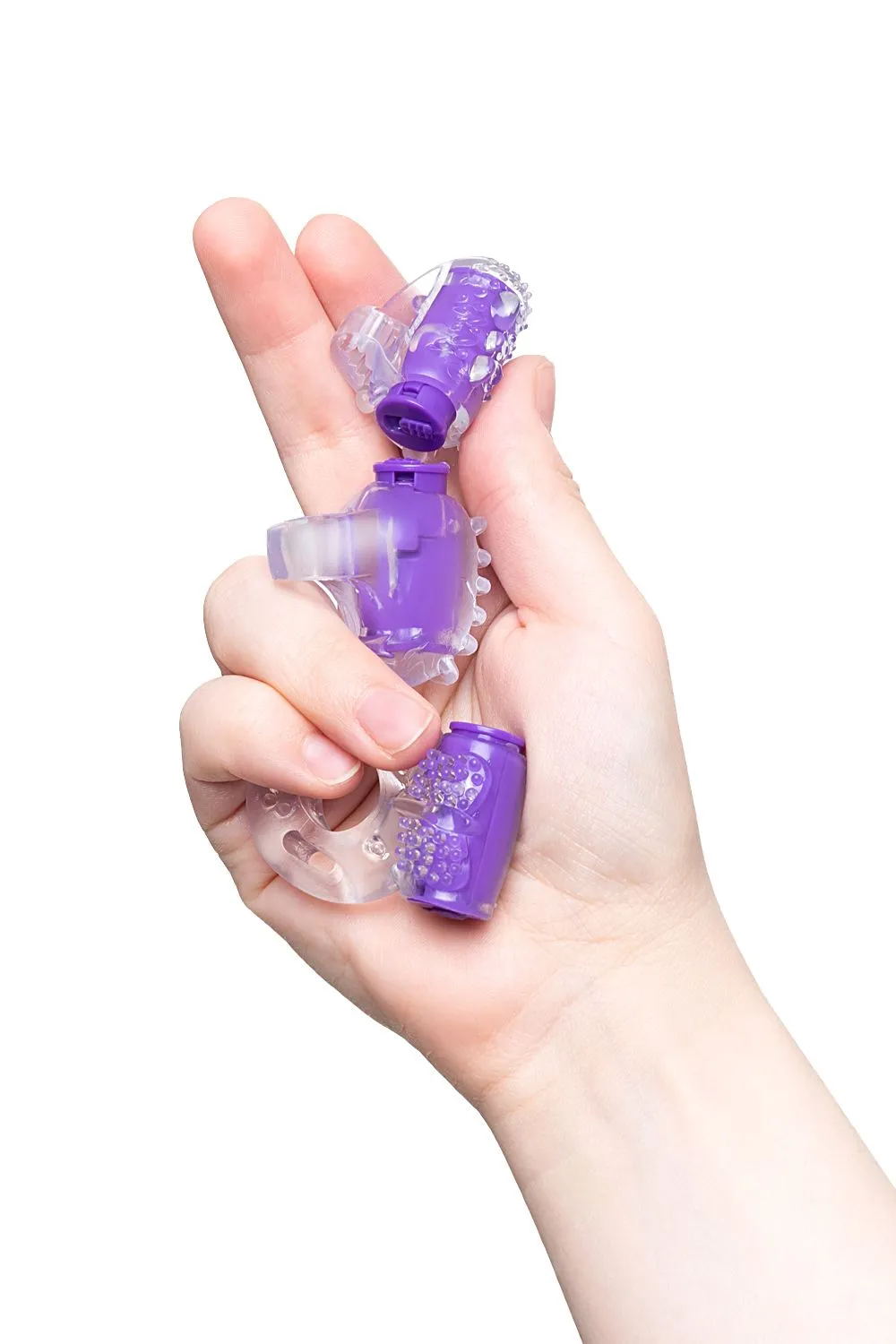Интимные аксессуары с вибрацией выполнены из эластичного прозрачного силикона и созданы для усиления ощущений от сексуальных ласк. Колечко на палец и на язык с разным рисунком щетинок повысят чувствительность эрогенных зон и подарят приятные моменты близости. Виброкольцо на пенис продлит эрекцию у мужчины и одновременно будет стимулировать и ласкать область клитора у женщины при контакте. Использование лубрикантов или массажных масел добавит комфорта при использовании аксессуаров, обеспечит мягкое скольжение и нежность прикосновений.