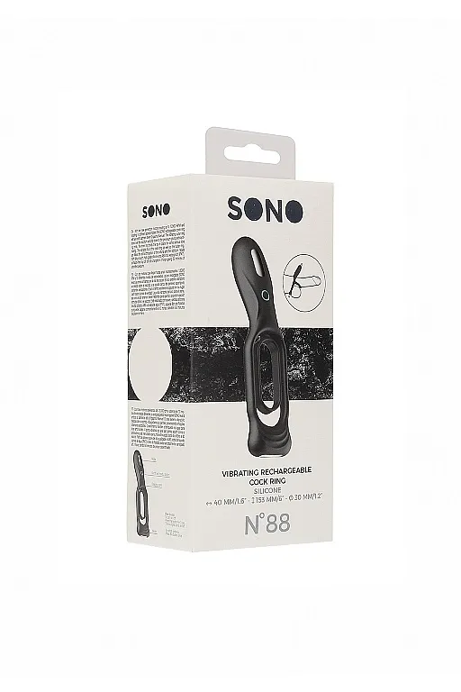 N0. 88 - Vibrating Rechargeable Cock Ring – перезаряжаемое устройство, предназначенное для поддержания эрекции и стимуляции. Кольцо имеет двойную структуру для фиксации на стволе пениса и дополнительно на мошонку.