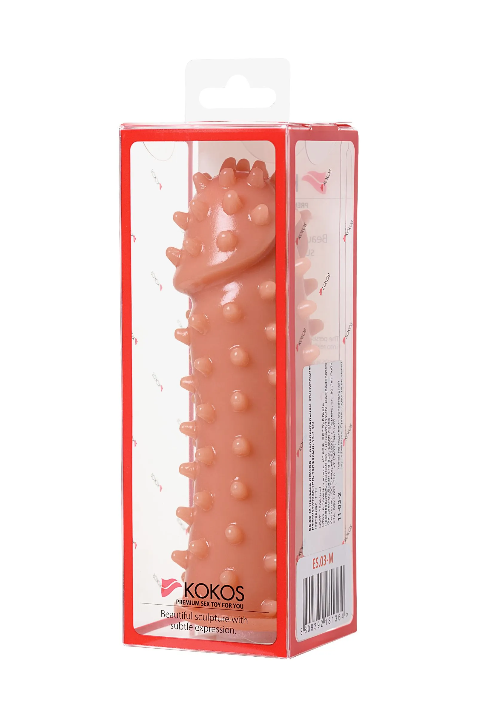 —Насадка KOKOS реалистичная с дополнительной стимуляцией, TPE, телесная, 14.7 см