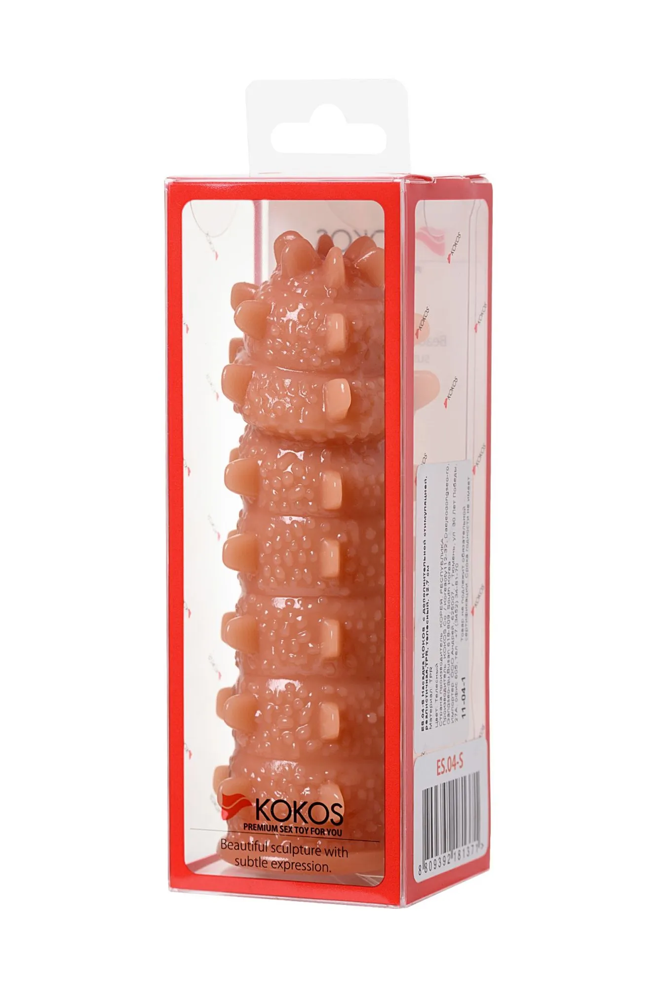 Увеличивающая насадка KOKOS Extreme Sleeve 04 с впечатляющей дополнительной стимуляцией решает сразу 3 задачи: дарит удовольствие обоим партнерам, позволяет экспериментировать с секс-игрушками и выводит интимную жизнь на более высокий уровень. Желанное разнообразие. Насадка придает члену внушительный объем и новую форму, поэтому как нельзя лучше подходит для сценариев «Секс с незнакомцем». При этом выразительный рельеф с выпуклыми точками и шипами привносит незабываемый эффект новизны в ощущения партнерши. Зашкаливающее удовольствие для двоих. В то время как женщина испытывает потрясающее чувство наполненности и получает интенсивную стимуляцию стенок влагалища, мужчина наслаждается более продолжительным половым актом и возбуждающими оргазмами партнерши. Яркие эксперименты. Киберкожа прекрасно передает всю мощность вибраций, поэтому насадку можно использовать не только с партнером, но и с любимым вибратором. Вы также оцените: как KOKOS Extreme Sleeve 04 превосходно тянется и легко надевается на член, обеспечивая при этом плотное и комфортное прилегание как KOKOS Extreme Sleeve 04 быстро принимает температуру тела и насколько он приятен на ощупь как KOKOS Extreme Sleeve 04 долго сохраняет первоначальный вид при соблюдении простых правил — использование лубрикантов на водной основе и хранение в индивидуальной упаковке в прохладном темном месте Увеличивающая насадка KOKOS Extreme Sleeve 04 подарит ощущения, которых у вас еще не было.