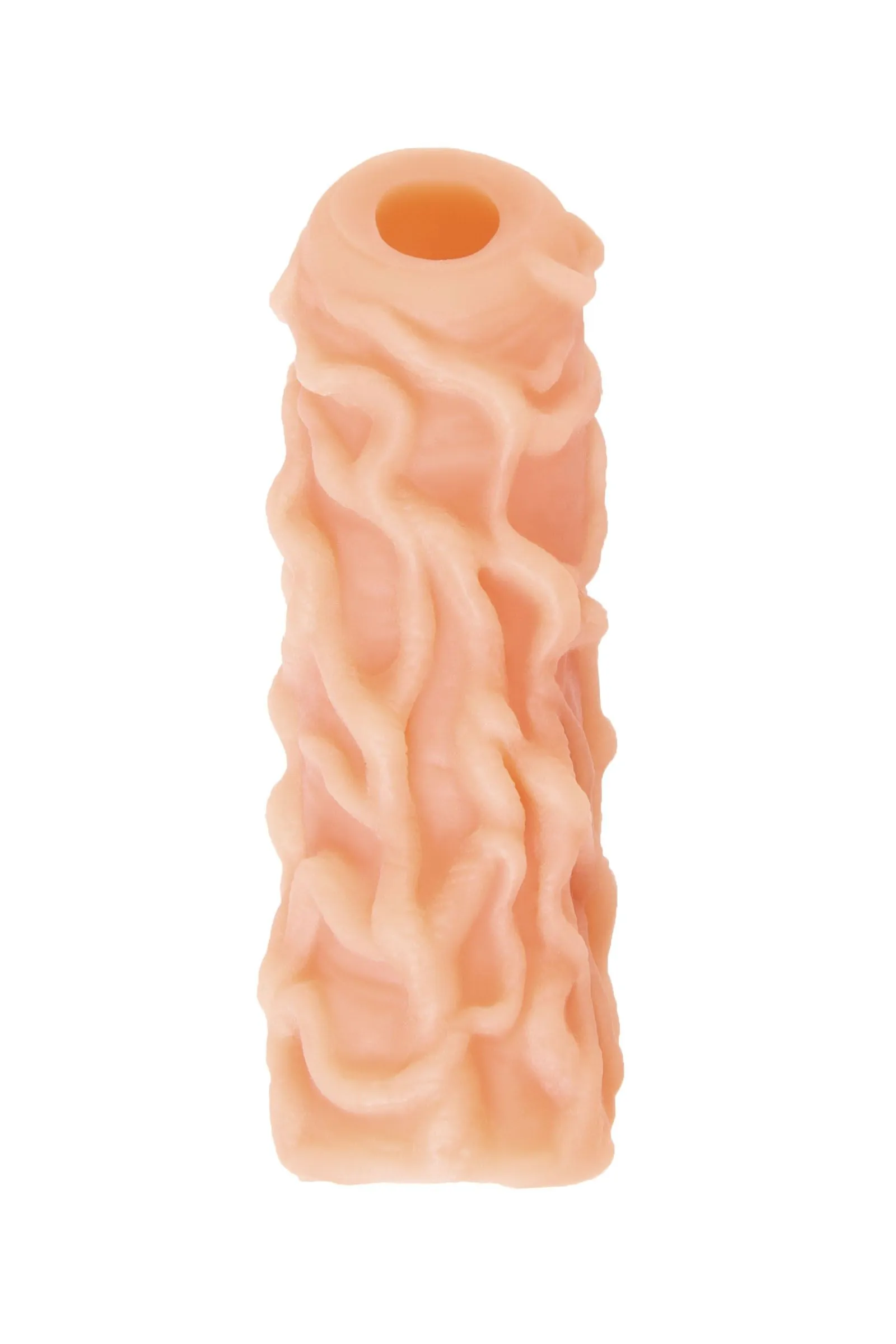 Открытая насадка с фантазийным рельефом от KOKOS предназначена воплотить фантазии о взаимном удовольствии. Реалистичная насадка на пенис - необходимый элемент для вашей сексуальной игры, если вы хотите максимально удовлетворить свою партнершу и сделать секс незабываемым. Откройте новые возможности: Увеличенный объем полового члена на 30% добавляет мужчине уверенности в своих сексуальных возможностях. Дополнительная стимуляция партнерши с помощью рельефа для яркого и насыщенного оргазма. Увеличение продолжительности полового акта у мужчины - задержка эякуляции, и наращивание темпа приближения оргазма у женщины. Насадка имеет форму “рукав”, плотно прилегает к пенису, создавая дополнительную толщину и оставляя головку открытой. Это позволяет сохранить чувствительность головки, задерживая эякуляцию. В основании есть отверстие для мошонки, с помощью которого вы надежно зафиксируете насадку на пенисе, не ограничиваясь в активных движениях. Насадка, за счет плотного облегания мошонки и головки, усиливает эрекцию. Ярко выраженный рельеф в виде многочисленных выпуклых вен по всему стволу насадки очень хорошо стимулирует зону G, вход во влагалище и настойчиво ласкает чувствительные зоны. Вариативность стимуляции регулируется активным темпом движения вперед-назад и изменением угла проникновения. Дополнительный объем дарит то самое чувство наполненности, увеличивая поток возбуждения. Мужчина тоже будет ощущать стимуляцию за счет давления стенок влагалища на пенис. Супер эластичный материал быстро принимает температуру тела, отлично тянется, сохраняя при этом прочность. Нежное и мягкое покрытие такое же приятное на ощупь, как и человеческая кожа. Насадка сделана из высококачественного безвредного для человеческого организма материала, который прошел необходимые тестирования и сертификацию. Долговечность использования при соблюдении правил хранения и ухода за насадкой. Используйте с насадкой лубрикант только на водной основе. Длина: 12 см Диаметр: 4,0 см Размер: M Цвет: телесный Материал: TPE Страна бренда KOKOS: Корея