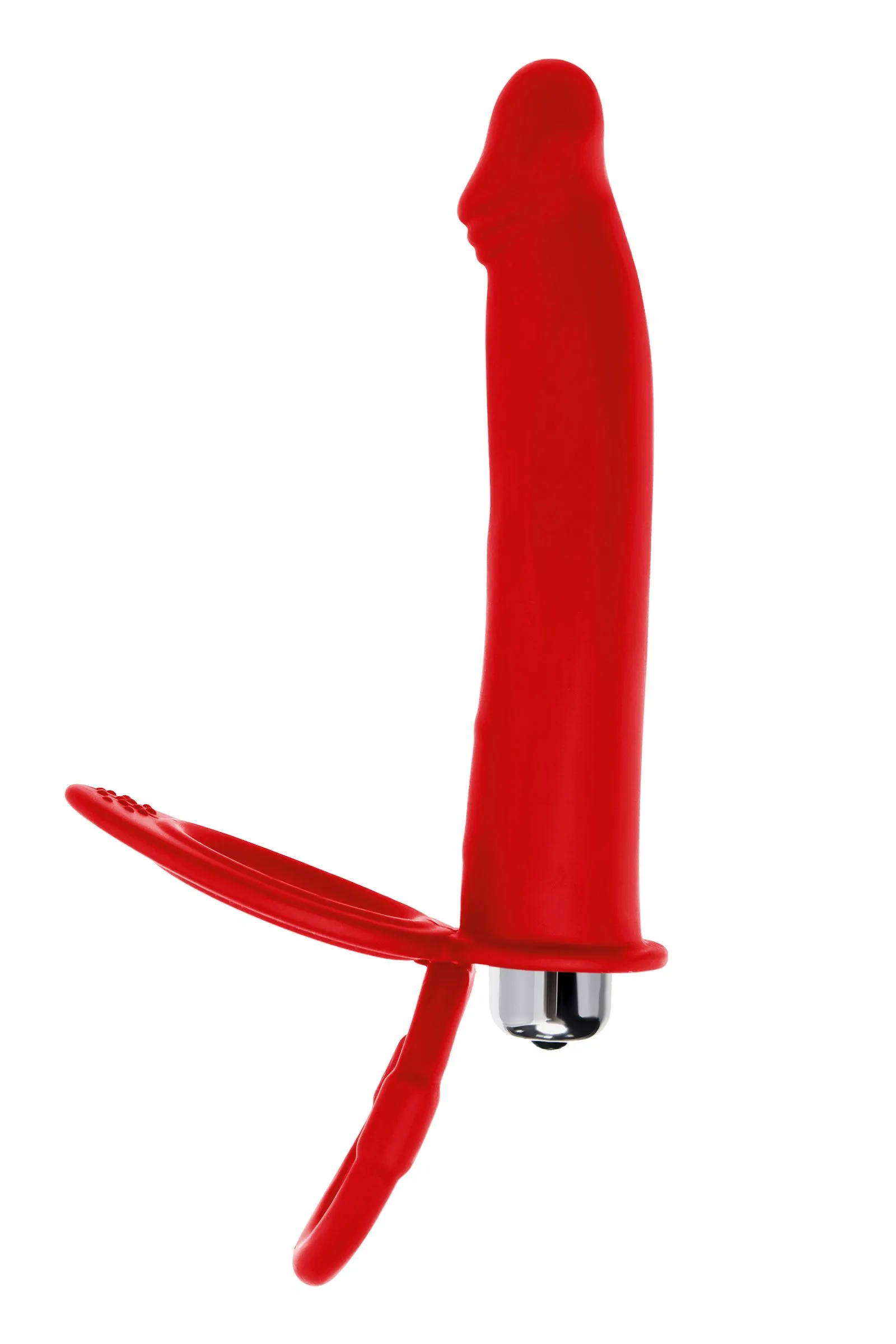 Насадка на пенис для двойного проникновения – это отличный выбор для любителей продвинутых сексуальных развлечений без участия третьих лиц. Встроенная вибропуля добавит ярких ощущений с помощью 10 режимов вибрации. Насадка надежно фиксируется на теле двумя кольцами, которые плотно обхватывают ствол пениса и мошонку. Это оказывает дополнительный эффект для продления полового акта, а партнер в это время получает в два раза больше удовольствия, что ускоряет приближение оргазма. Гладкий ствол и слегка изогнутая головка с дополнительным рельефом отлично стимулирует эрогенные зоны. Материал насадки – гипоаллергенный медицинский силикон. Рабочая длина насадки 13 см, диаметр в самой широкой части 2,6 см. Диаметр колец 3,5см/ 3,8 см. Материал: силикон, ABS-пластик. Цвет: красный