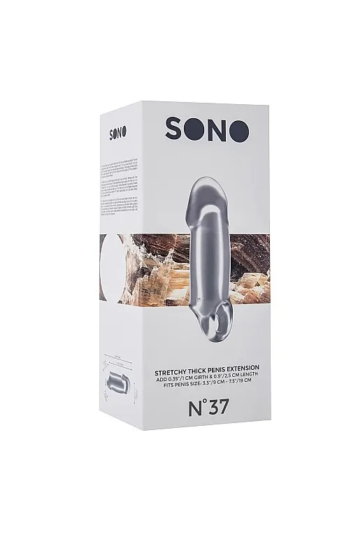 No.37 - Stretchy Thick Penis Extension – насадка закрытого типа для небольшого увеличения длины и обхвата полового члена с кольцом для фиксации на мошонке. Она имеет округлую головку для оптимальной стимуляции. Насадка произведена из высококачественного мягкого материала.