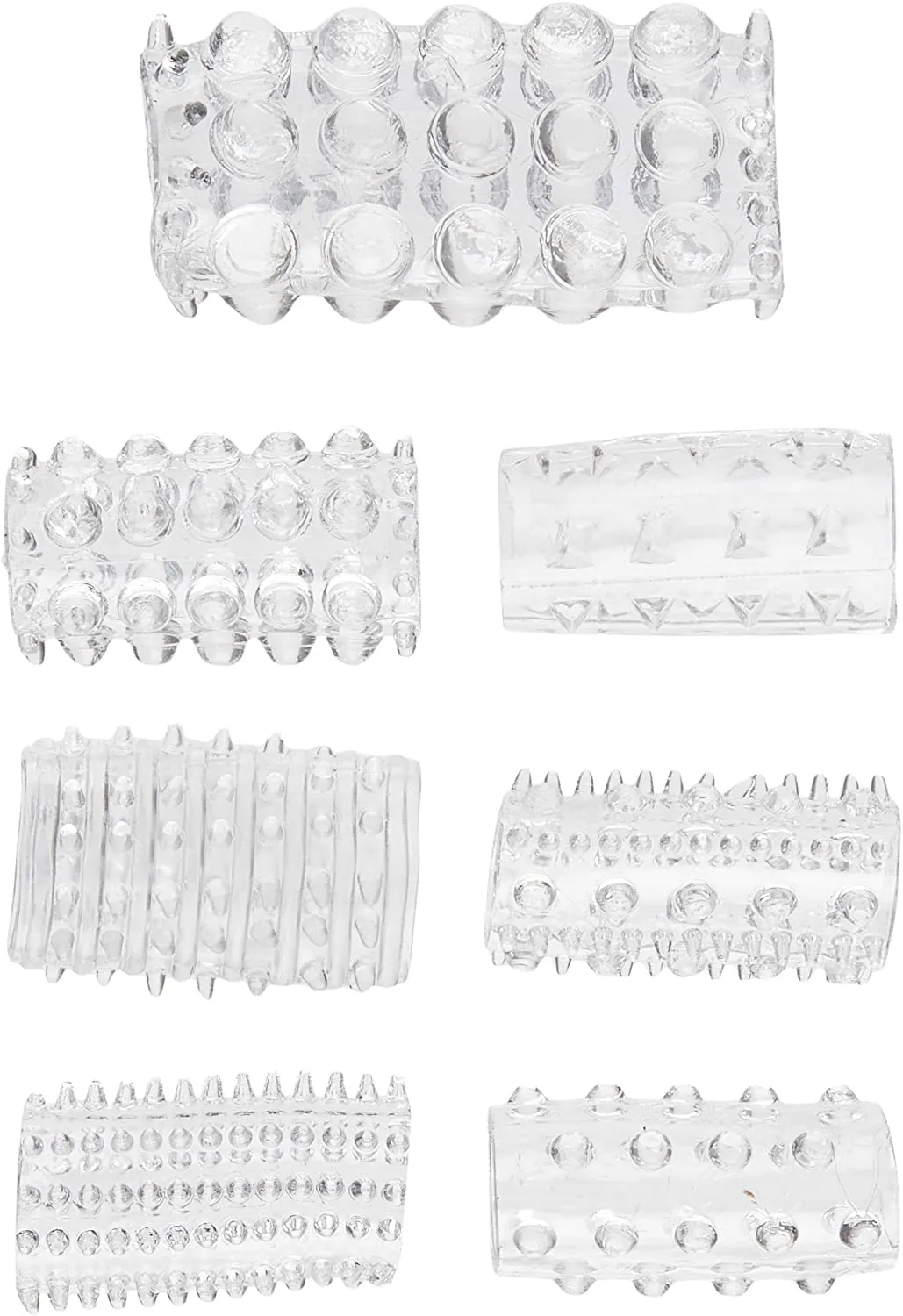 Sensual Seven Textured Sleeves - это набор из 7 насадок для члена и пальцев открытого типа. Каждая насадка имеет уникальную текстуру, для более лучшей стимуляции.