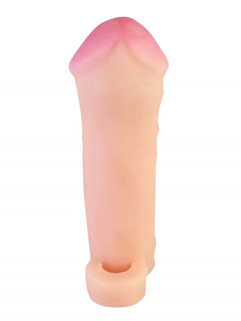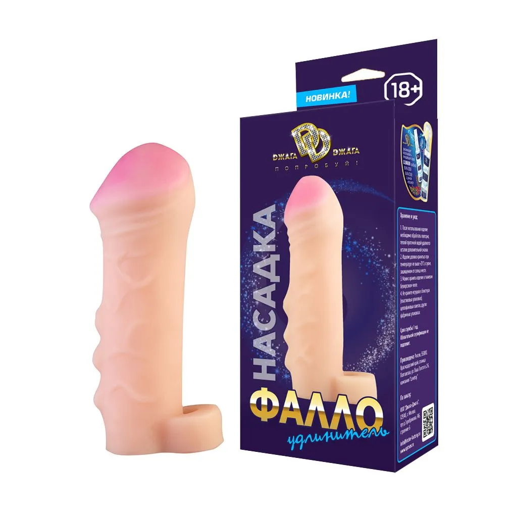 Насадка-удлинитель на пенис обеспечивает увеличение размера как в длину, так и в толщину. Сделана из полимера, создающего имитацию мягкой, шелковистой "кожи" с ощущением реального фаллоса при интимном контакте. Насадка увеличивает время близости и компенсирует анатомическое несоответствие партнеров. Тело насадки ровное, гладкое, с небольшой головкой. Благодаря высокой эластичности материала насадка плотно обхватывает и надежно прилегает к члену, как вторая кожа. Для дополнительной фиксации имеется петля для крепления под мошонкой. Размер и объем петли позволяет удерживать насадку и обеспечивает чувственную стимуляцию, сделав акт продолжительнее. Тело насадки с выраженным рельефом из вен и выступающих узелков. Головка ярко выраженная, массивная.
