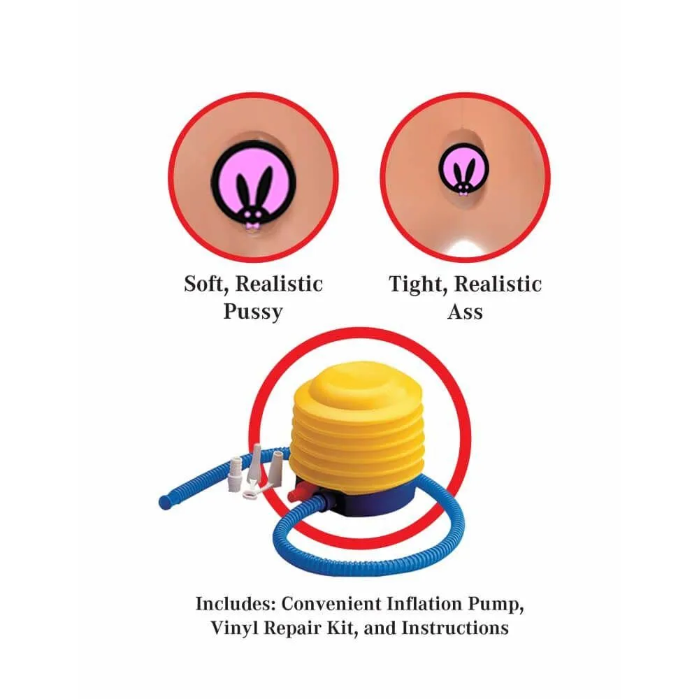 Кукла Katie Cougar Life-Size Love Doll сделана компанией Pipedream. Кукла надувается до реального размера при помощи насоса (есть в комплекте). Не используйте компрессор. Надуйте ручным насосом до 90% от натуральной величины и подкачайте до полного размера через 10 минут. Лицо куклы сделано с использованием 3D моделирования, также у Кэти есть большая грудь с мягкими сосками, два отверстия (анус и вагина), и реалистичные волосы.
