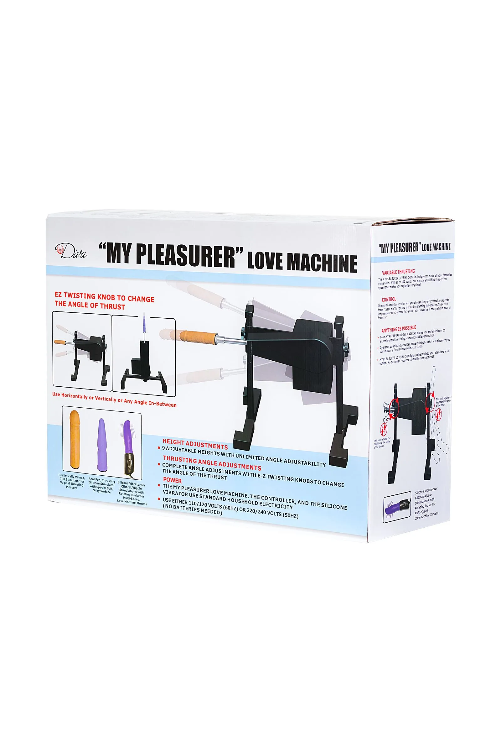 My Pleasure — название этой секс-машины говорит само за себя — «моё удовольствие»! Легко собирается, занимает немного места, работает бесшумно, но в приличном диапазоне позиций и очень мощно (до 300 фрикций в минуту). Движение штока может быть горизонтальным и вертикальным, также имеется регулировка высоты и угла наклона. Приспособление снабжено резиновыми накладками на опорах, которые не позволяют игрушке скользить даже по гладкой поверхности. Приятные дополнение к покупке — высококачественные аксессуары, идущие в комплекте: насадка-фаллос из потрясающего материала FeelSoft (18 см), анальная насадка (16,3 см) и подключаемый к секс-машине силиконовый вибратор (12 см). Помимо прочего, к машине применимы и другие сменные фаллоимитаторы с креплением Vac-U-Lock. Индивидуальные игры, в паре или яркие групповые сессии — с этим аксессуаром нескончаемые часы удовольствия гарантированы при любом сценарии!