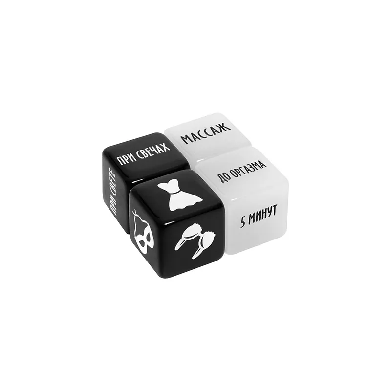 Внутри вас ждут 4 кубика. Первый подскажет, что нужно делать; второй — атрибут одежды, который должен быть на девушке; третий — условия ласки; а четвёртый — время ласки. И что с этим делать? Просто по очереди или одновременно бросьте кубики и воплотите в жизнь указанное.
