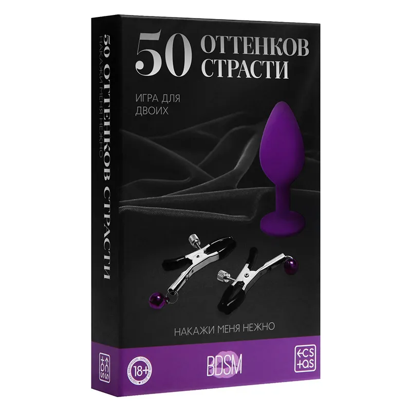 Внутри вы найдёте 30 карт, анальную втулку, зажимы для сосков, договор о неразглашении. Ощутите на себе все 50 оттенков страсти!