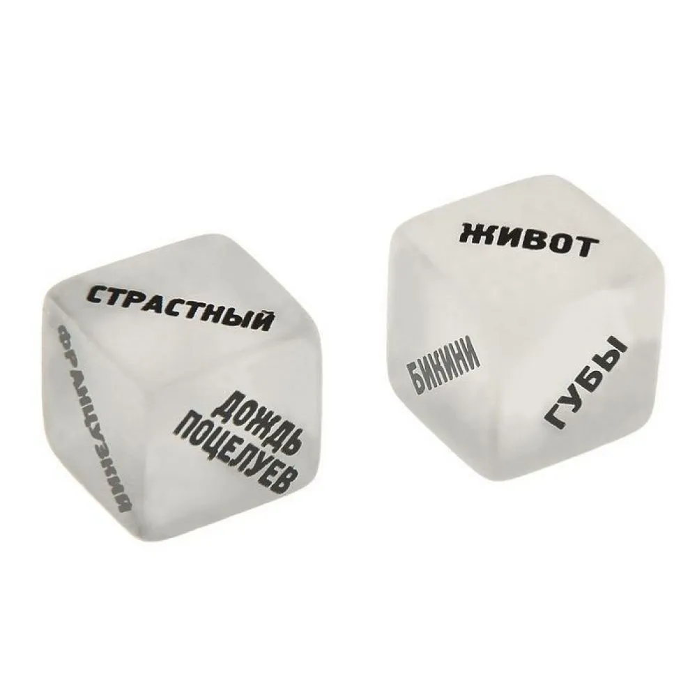 Бросайте кубики одновременно, определяя, какую часть тела партнера нужно поцеловать и каким образом: страстно и эротично в губы или, к примеру, по-французски в зону бикини. Два кубика с шестью гранями − это увлекательная игра, которая, несомненно, подарит новые яркие ощущения!