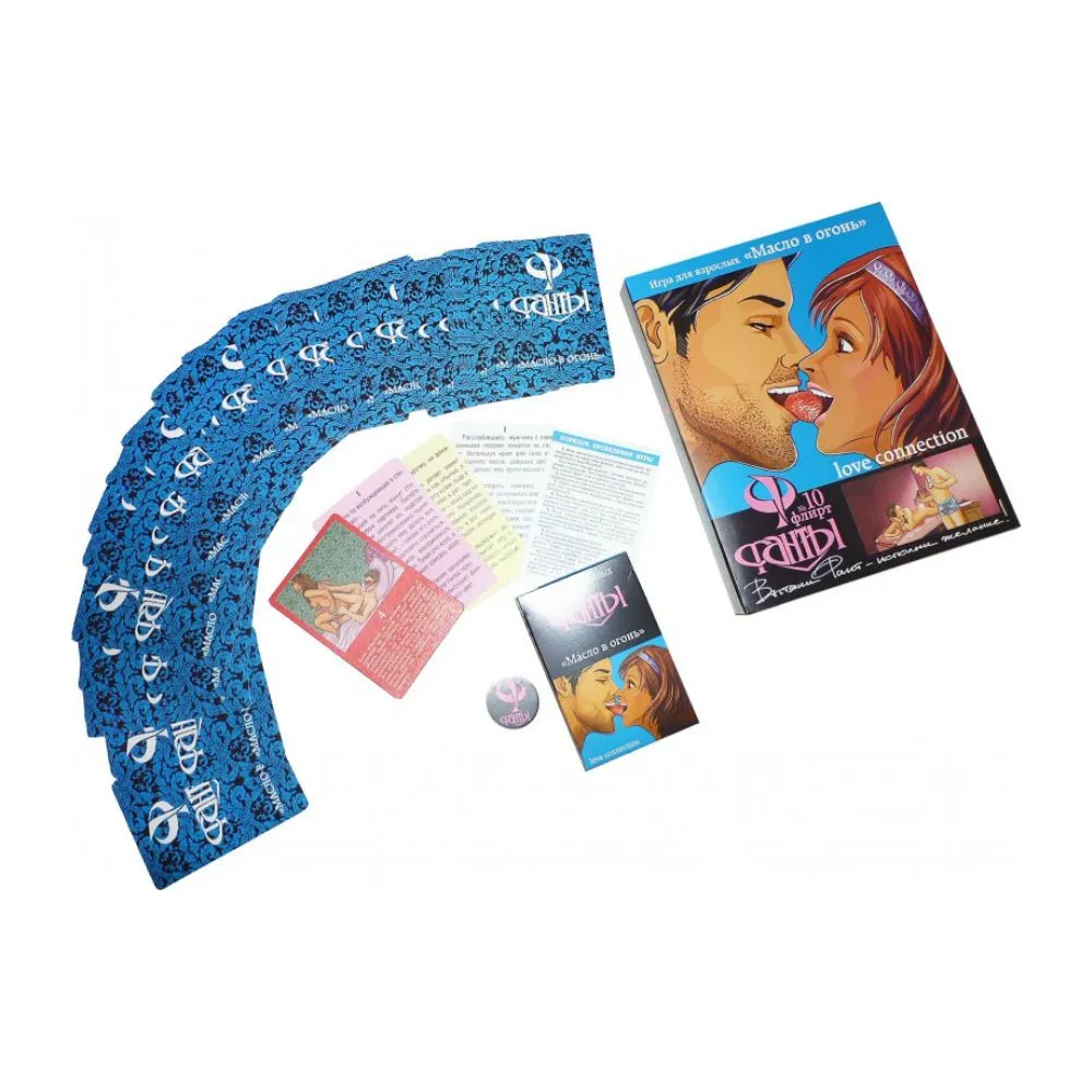 Игра-фанты «Масло в огонь» предназначена для влюблённых пар, желающих внести перчинку в свои отношения и узнать друг друга ещё лучше. В игре 48 карточек с заданиями разной степени сложности. Белые карточки содержат наиболее простые и непринуждённые задания, жёлтые карточки несут в себе более сложные, но не слишком откровенные задания, на розовых карточках вы найдёте интересные позы и сценарии для любовных игр. Красные карточки самые сложные – очень откровенные задания сексуального характера. Эта игра подтолкнет вас к погружению в мир удовольствий и раскрытию вашего потенциала. Она станет отличным подарком паре!