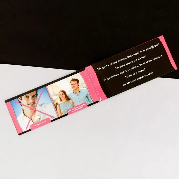 Набор купонов "Правила съема" помогут Вам правильно смоделировать нужные ситуации на волнительном первом свидании. Воспользуйтесь советами, написанными на листках, чтобы добиться только правильного развития событий. Задавайте вопросы, которые помогут вам с партнером лучше понять друг друга и настроиться на романтичный лад. Влюбляйтесь и удивляйте!