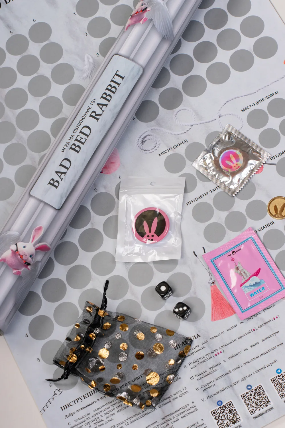 Чувственная настольная игра Bad Bed Rabbit от Pink Rabbit – игра для партнёров на сближение. Позвольте страсти и случаю решить, как именно вы сегодня будете любить друг друга. Создайте антураж, зажгите ароматические свечи, не забудьте массажное масло с волнующим ароматом и любимый лубрикант.. И начинайте игру!