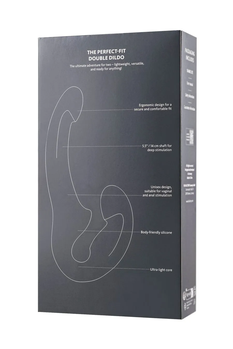 Вторая часть предназначена для ласк активного партнера, длина 15,5 см. Изгиб и выпуклый рельеф удерживает игрушку внутри и соприкасается с двумя эрогенными точками активной партнерши – клитором и точкой «G». Девушка может сама контролировать свой оргазм.