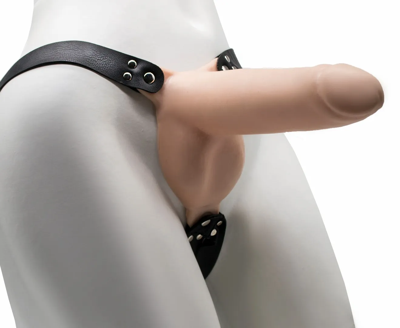 Каркас (пустотелый фаллоимитатор) для мужчин имеет четыре кожаных ремешка для закрепления на теле. Снизу два из них «обходят» мошонку или прикрепляются к полимерной имитации яичек, которая накрывает мошонку сверху. Сверху стропы создают пояс на талии. Пластмассовые регуляторы позволяют расширить диапазон регулировки в талии до 180 см. На пояснице, сзади сделан небольшой бандаж, обеспечивающий удобство при носке