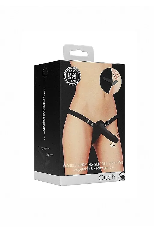 Double Vibrating Silicone Strap-On - Adjustable – женский страпон с креплением с помощью универсальных полиуретановых ремешков. Он состоит из двух почти одинаковых частей, различающихся только размером и степенью наклона к основанию. Основа страпона изготовлена из качественного силикона, который не содержит фталатов и совершенно безопасен для здоровья. Эта игрушка с 10 скоростями и сверхмощным моторчиком, который разгоняется до 7500 об/мин при шуме меньше 55 дБ.