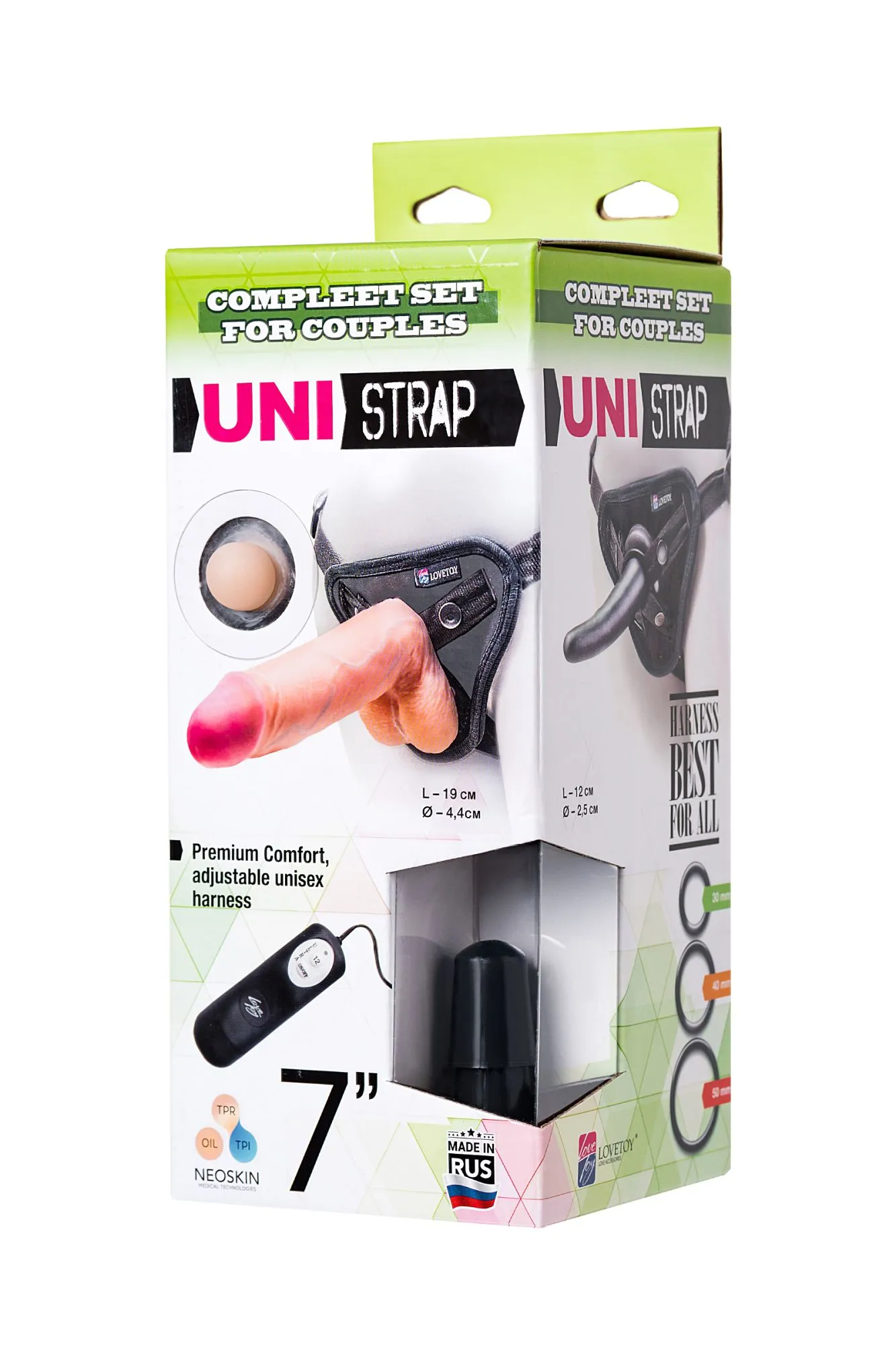 Лучшее предложение страпонов по соотношению цены и безупречного качества. • В комплекте прилагаются 2 насадки с разными характеристиками. • Два способа надежной фиксации на поясе. • Возможность идеальной регулировки. • Подходит как женщинам, так и мужчинам (унисекс). • Превосходный материал. • 12 режимов регулировки вибрации. • Бандажный пояс. • Жесткая коробка из микрогофры с пробником. • Длина реалистичного фаллоимитатора из неоскина с каркасом: 7 дюймов (19 см), диаметр 4.4 см. • Эластичная анальная (вагинальная) насадка 12 см, диаметр 2,5 см.