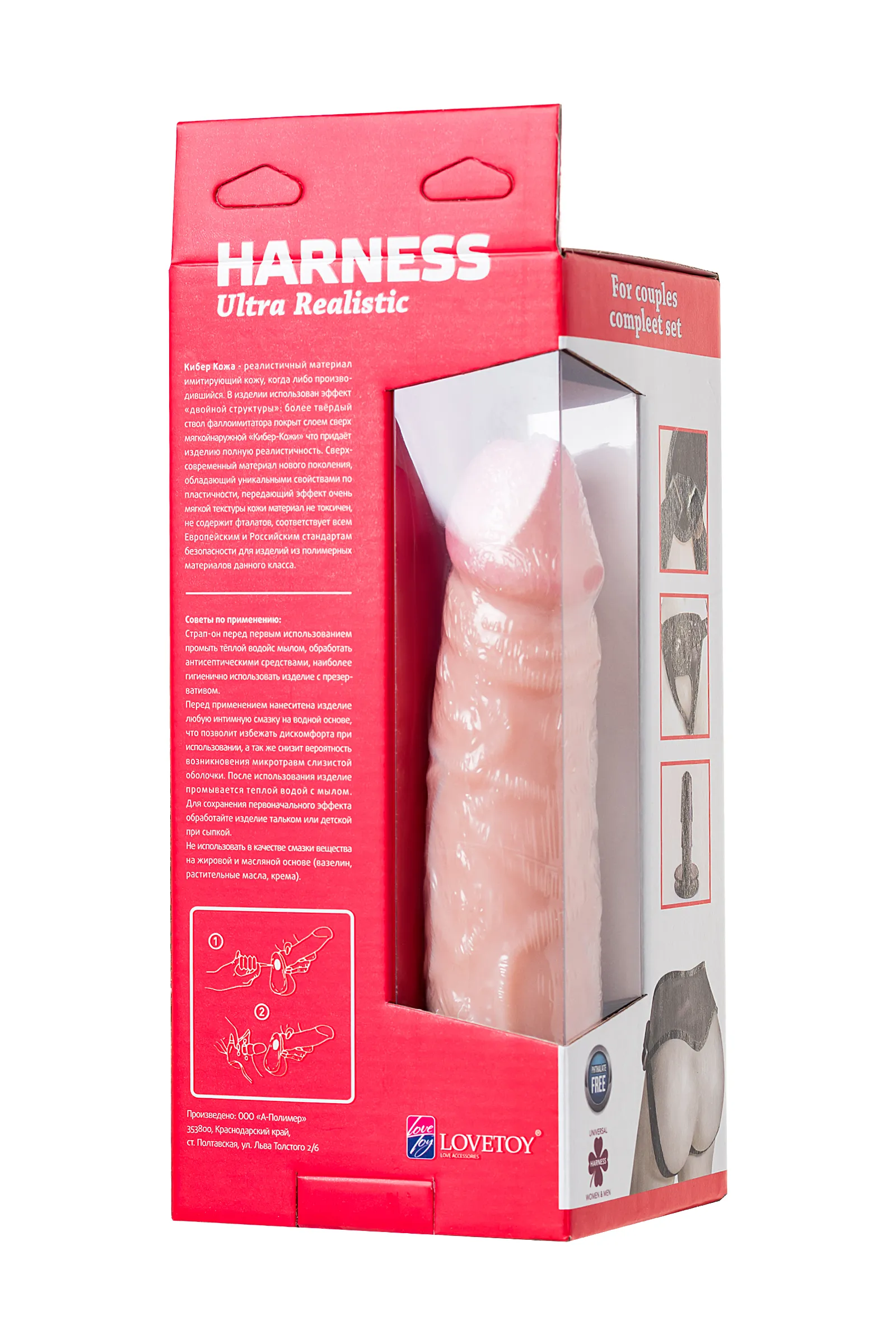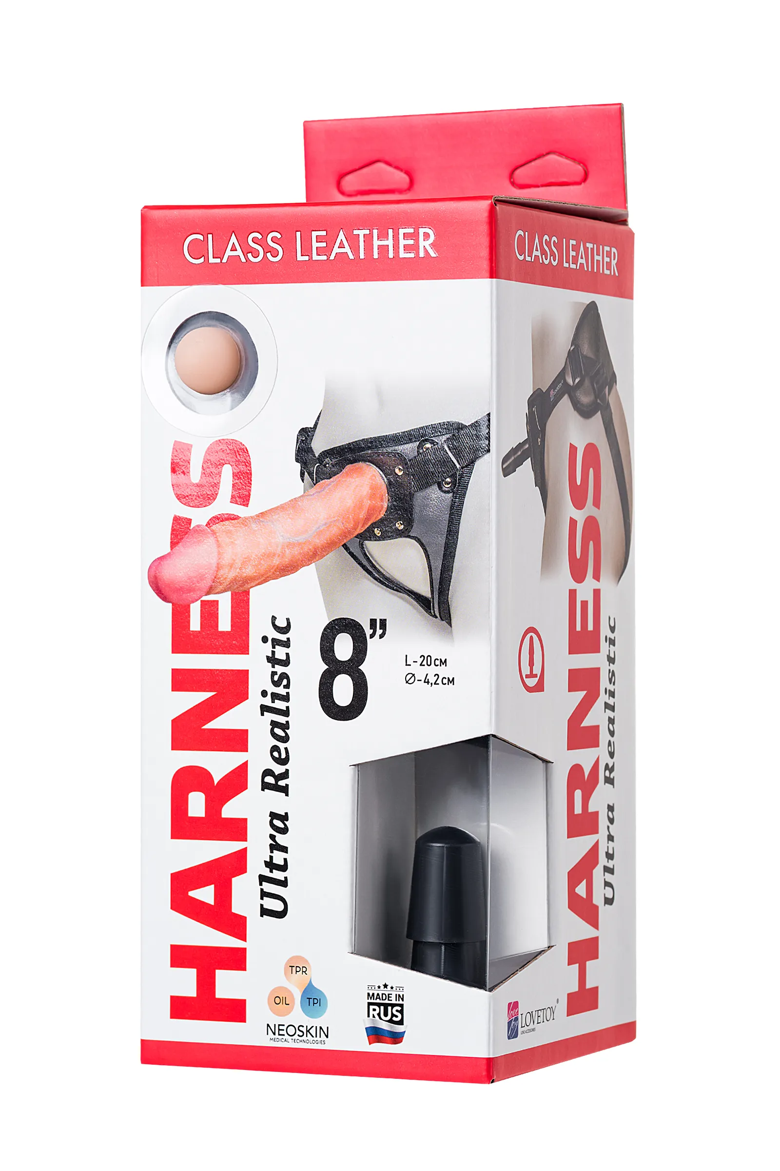 —Страпон на креплении LoveToy с поясом Harness, реалистичный, neoskin, телесный, 20 см