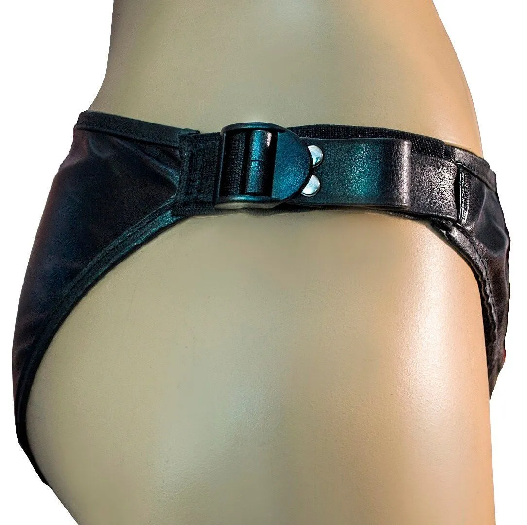 Регулируемый пояс сделан из искусственной кожи. Мягкий материал по краям гарантирует его комфортное использование. Благодаря фиксаторам по бокам трусики будут хорошо примыкать к телу, не оставляя зазоров и надежно удерживая на месте насадки.