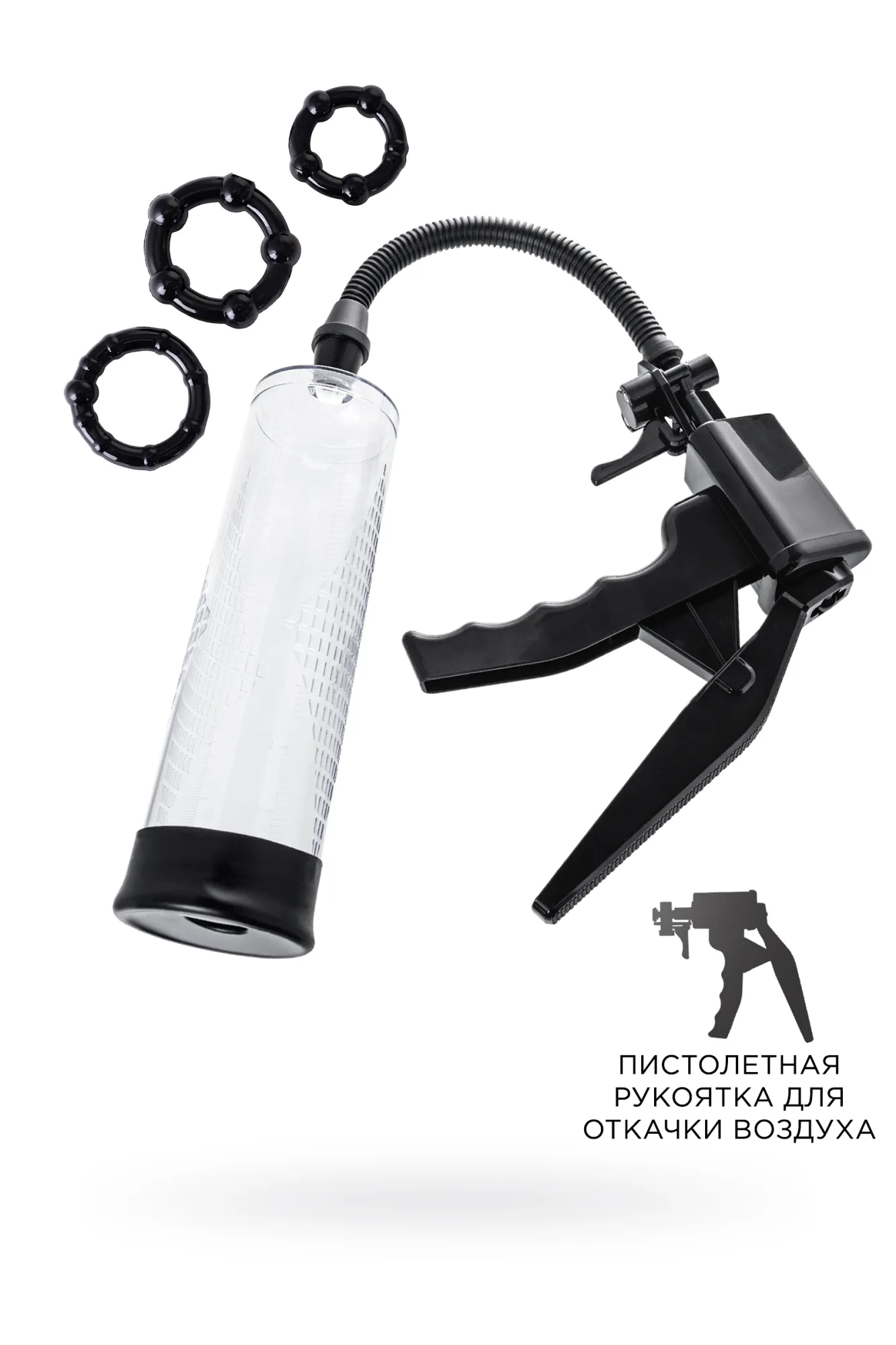 —Механическая помпа для пениса Sexus Men Erection Mads, ABS-пластик, черная, 62 см
