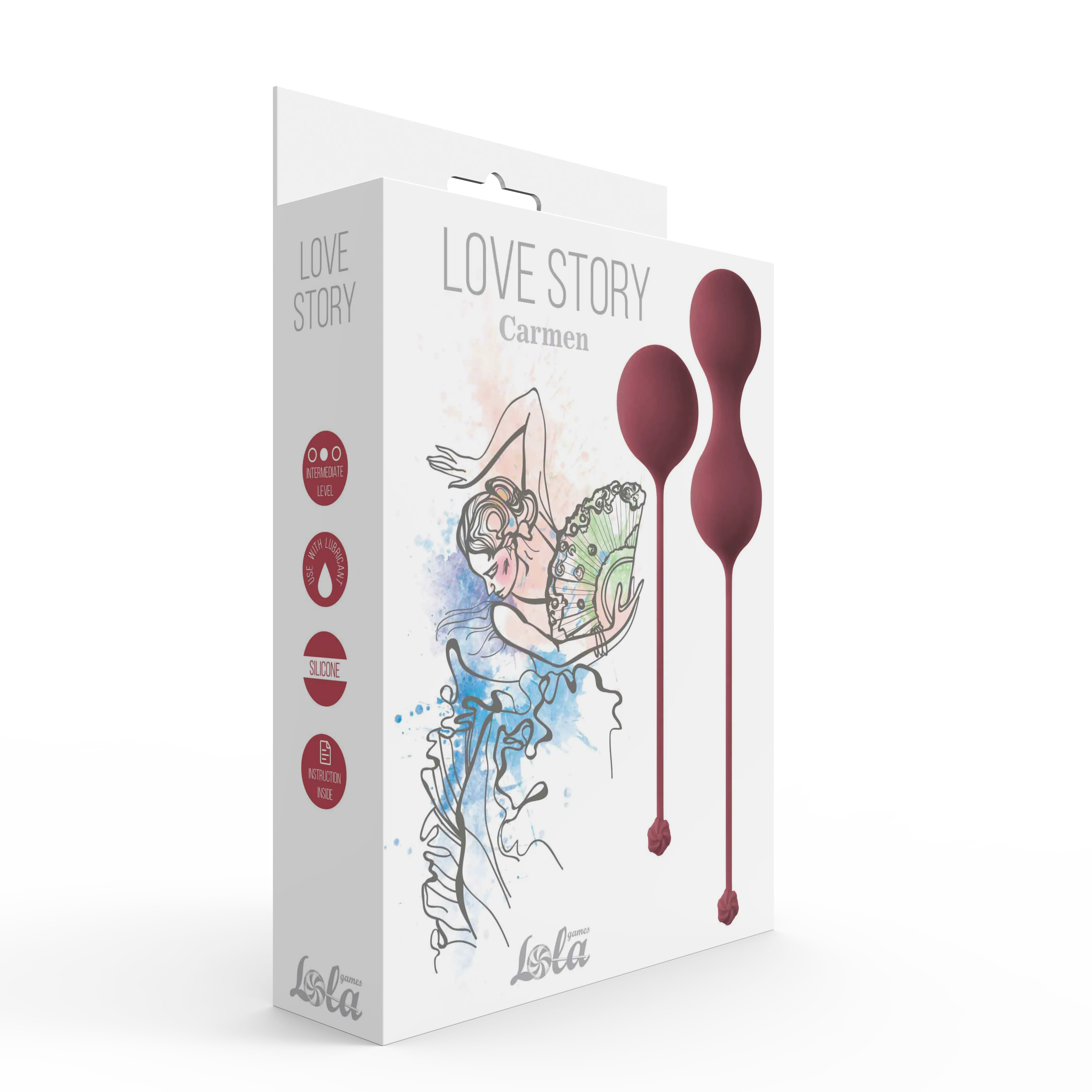 Набор вагинальных шариков со смещенным центром тяжести Carmen для для легкого и среднего уровня тренировок мышц тазового дна предназначен для укрепления интимных мышц и повышения их чувствительности. В комплект входят двойные шарики на сцепке весом 73 г и одинарный весом 44 г. Тренировки можно начать с более легкого шарика, постепенно увеличивая нагрузку. Вагинальные шарики можно использовать для спокойных тренировок по системе Кегеля, или в дополнении к занятиям спортом. Для комфортного использования рекомендуется добавить лубрикант. Материал: гипоаллергенный силикон. Максимальная длина шариков на сцепке —18,3 см, максимальный диаметр — 3,2 см. Максимальная длина одинарного шарика — 13,9 см, максимальный  диаметр — 3,5 см. Длина рабочая двойного шарика-8 см. Длина хвоста двойного шарика-9,2 см