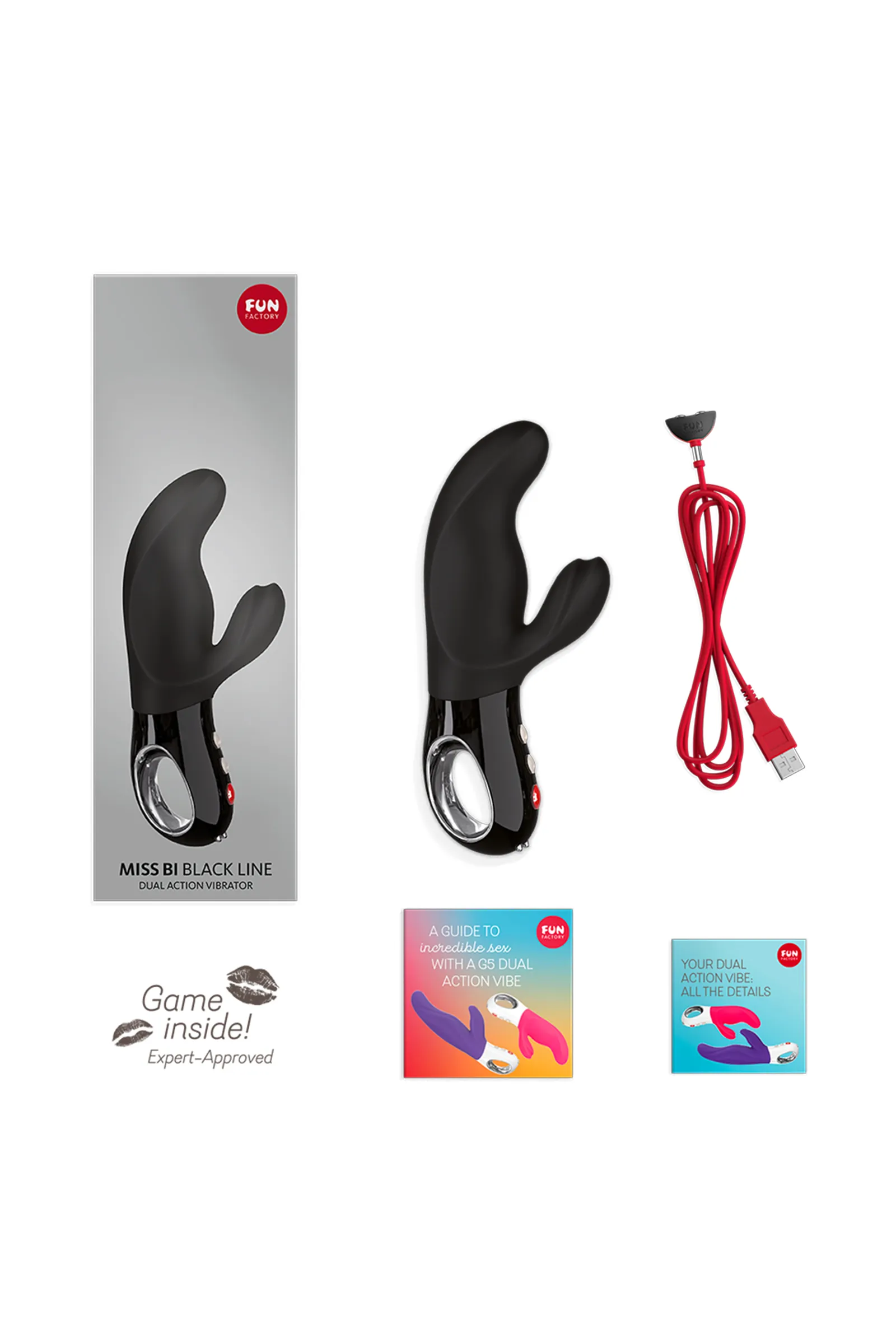 MISS BI - Вибратор-бестселлер в обольстительном чёрном цвете MISS BI - двойное удовольствие! • Двойное воздействие: клитор и точка-G • Широкий и гибкий лепесток для стимуляции клитора • Загнутый кончик для массажа точки-G • Идеальная длина для двойной стимуляции • Расширение в нижней части обеспечивает ощущение наполненности