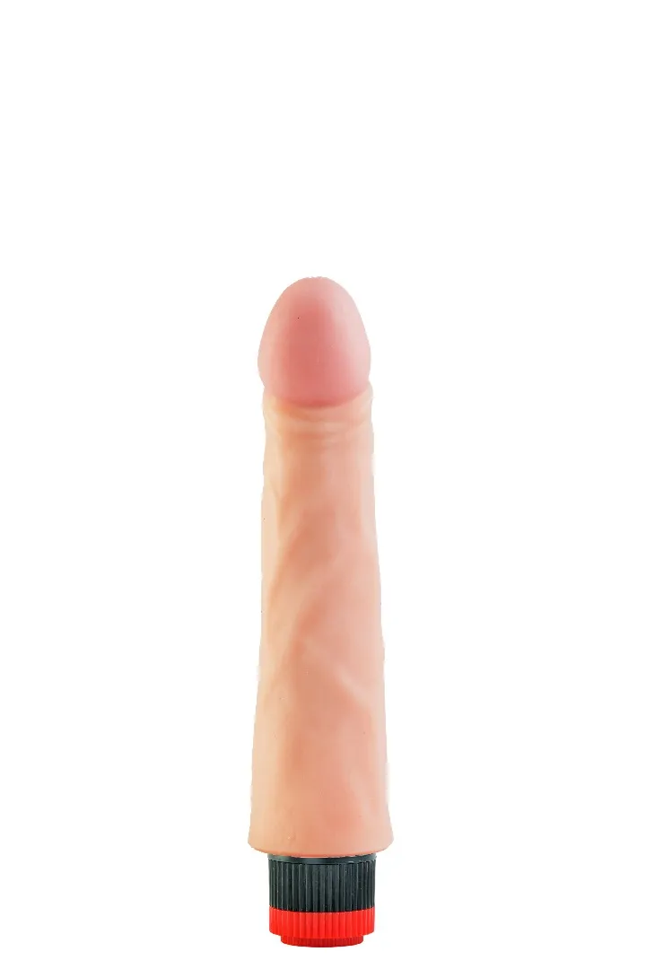 Вибратор-реалистик телесного цвета. Имеет форму члена с ярко-выраженной головкой, рельефный, выполненный из материала неоскин, не имеет швов. Скорость вибрации регулируется кнопкой у основания изделия. Характеристика: работает от 2АА батареек (нет в комплекте), общая длина – 24 см, рабочая длина- 20 см, максимальный диаметр- 5 см, без запаха, упакован в пленку.